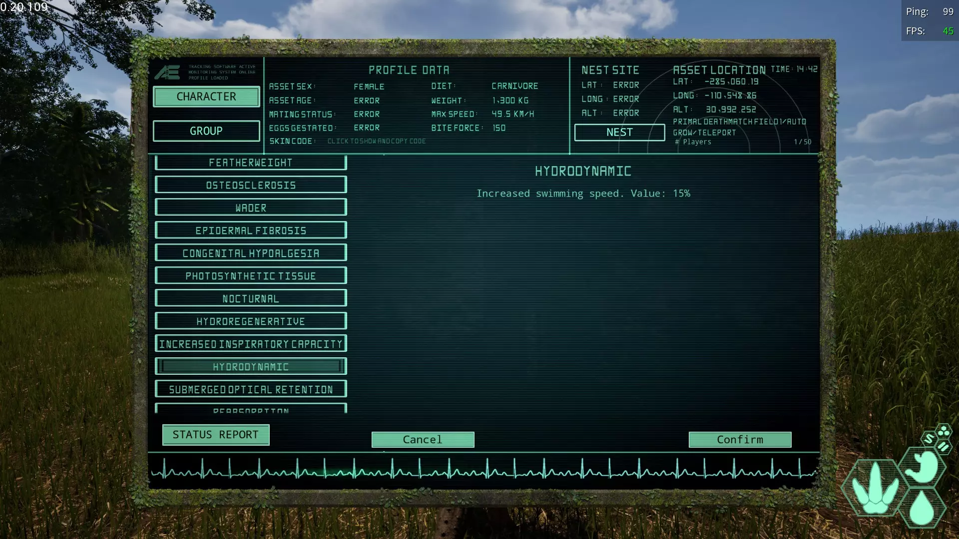 流体变异(Hydrodynamic) 简称:HD 获取槽位→全部 效果:提升游泳速度。 不算差,但也没到需要优先选择的程度,推荐半水生生物使用。