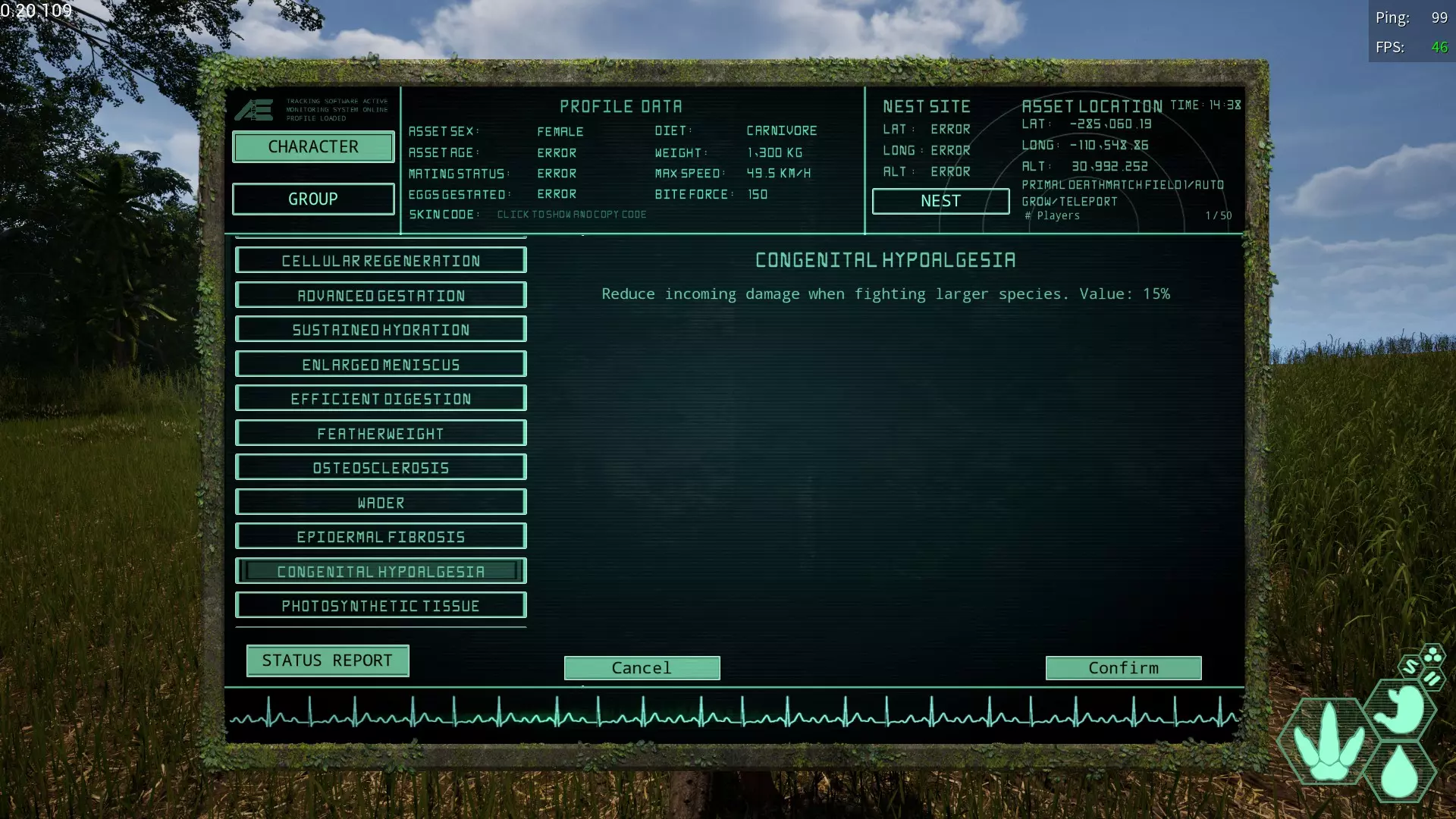 先天性痛觉迟钝/痛觉钝化变异 简称:CH 获取槽位→全部 效果【减轻来自比自身更大生物的伤害】 小型、中型生物必备的变异 绝对推荐装备的变异