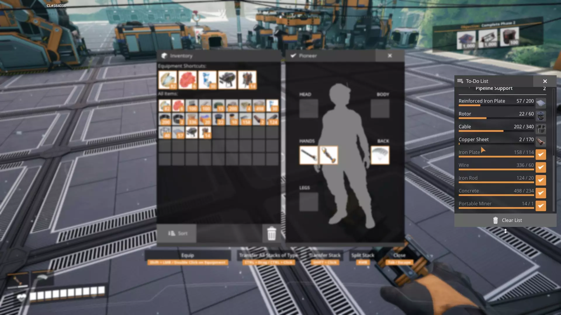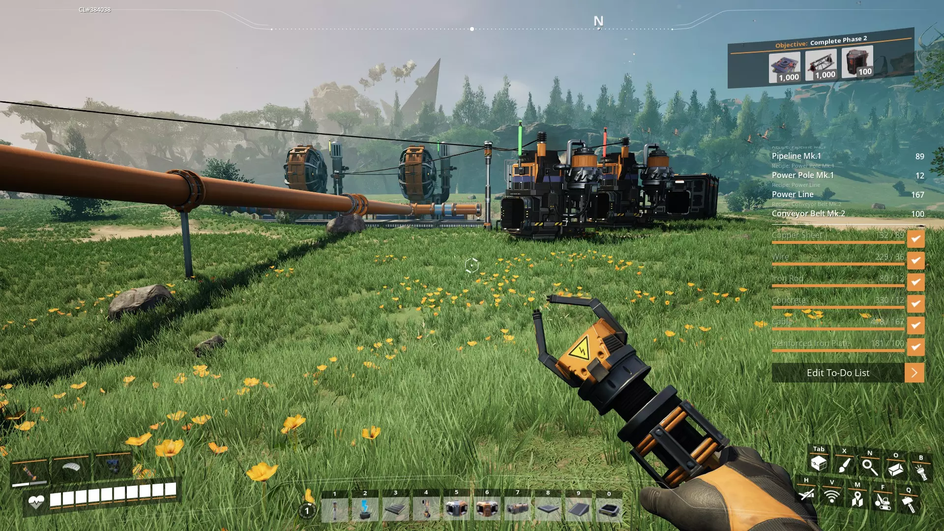 现在对其他部件执行相同操作: 2台水泵 4个生物质燃烧器 14个分流器 200根管道 6个管道接头 4个管道支架 20根电力杆 200米电线 600米MK1传送带 80个地基(1格厚) 1台MK1采矿机 完成后,请收集所有部件,确保每个部件旁边都有勾选标记。