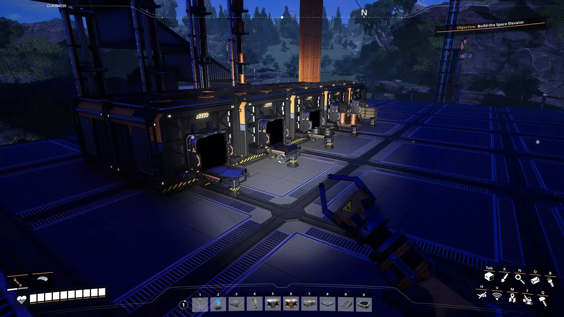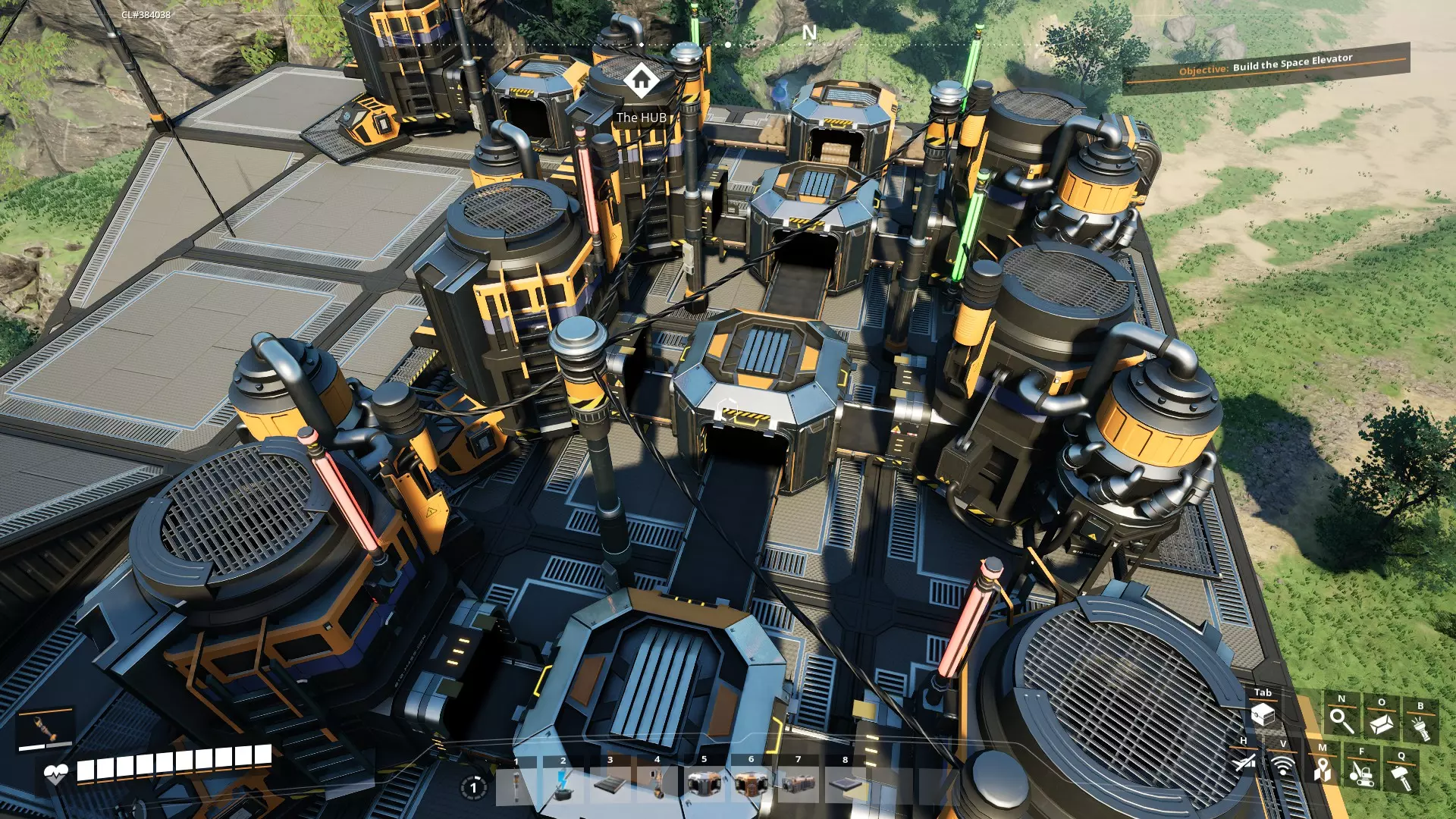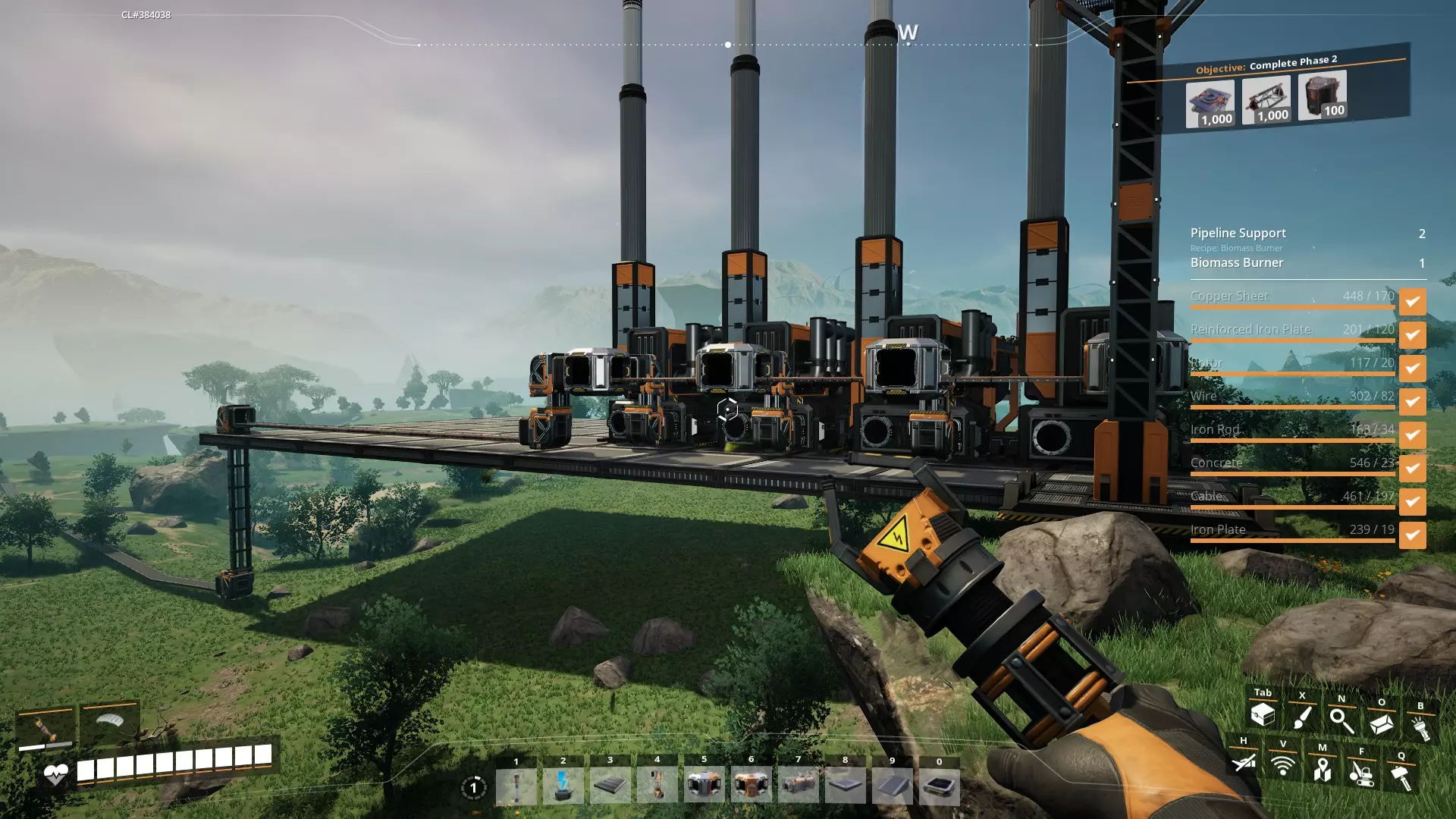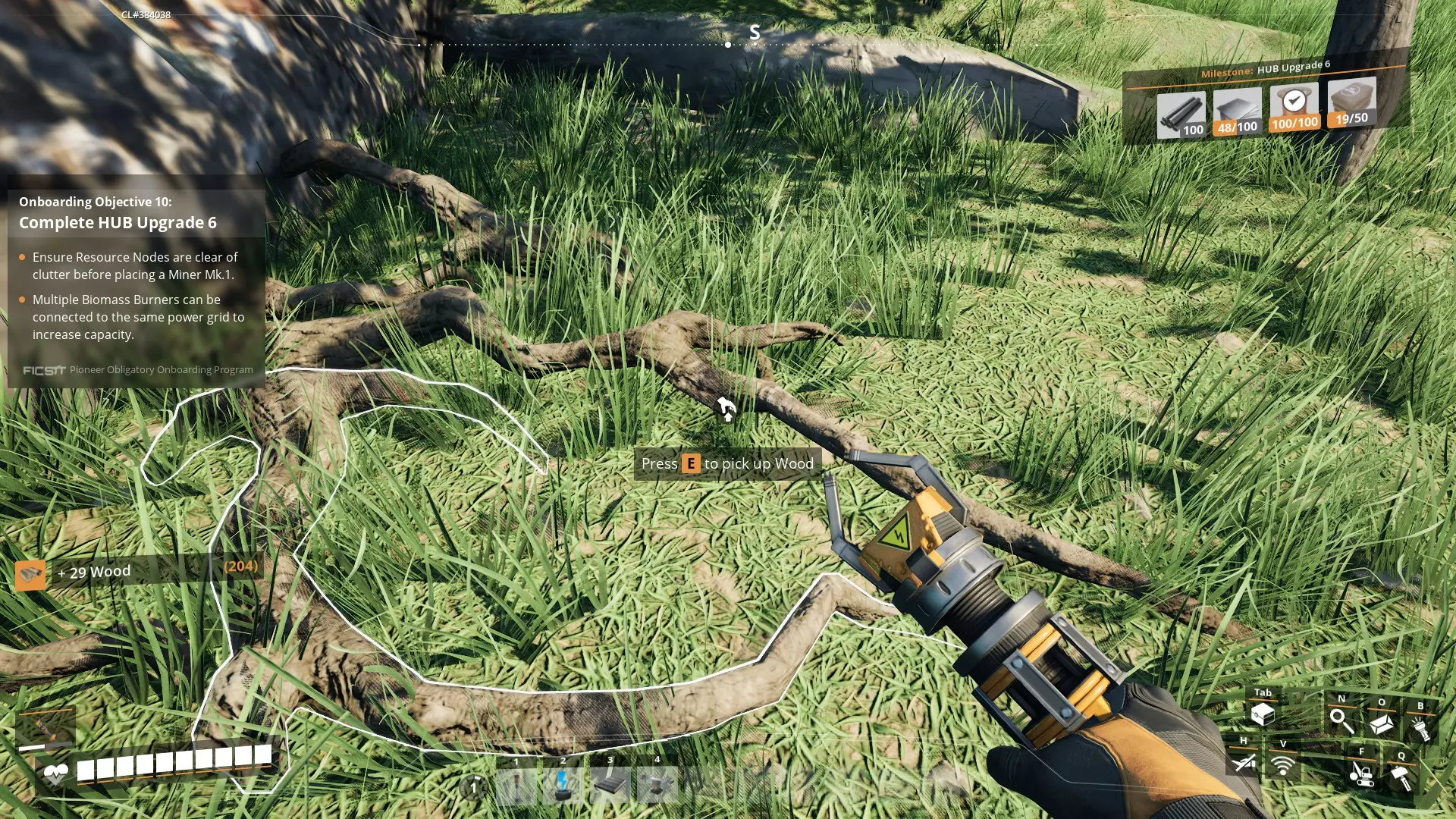 5. 在采矿点附近建造工作台。你可以在等待手动采矿机填满资源时,同时制作锭/混凝土。 6. 找到各个资源点后,你可以将枢纽重新安置在它们之间的等距离位置。只需拆解(F键)并重建即可。 7. 可能不太明显,但当你将枢纽升级到5级时,会在枢纽上获得一个额外的生物质燃烧器,同时还会获得一个电线杆。放置电线杆并将两个生物质燃烧器都连接到它,然后从这里将电力连接到你的其他机器。这将使你的电力翻倍。