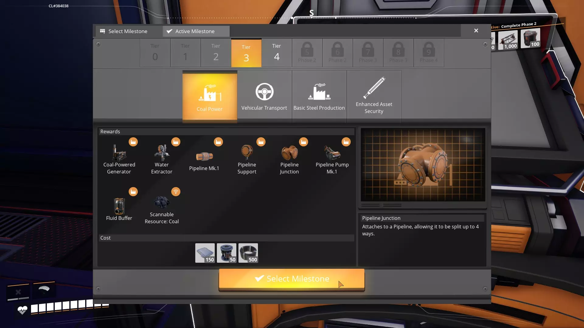 7. 新资源节点 地图上新增了大量可收集的资源,包括: caterium矿、煤矿、铝土矿、SAM矿石、硫磺矿、铀矿、石英矿,以及液体/气体资源,如水、原油、间歇泉和氮气。 间歇泉在解锁地热发电后会变得非常有用! 记得在地图上标记这些资源点以便后续利用,尤其是纯净节点。 硬盘与替代配方 世界中分布着118个坠毁点,包含108个替代配方。从残骸中获取硬盘后,将其带到MAM(多功能装配机)进行研究。 提示:研究硬盘期间(10分钟)MAM将无法用于其他操作,因此建议在开始研究硬盘前先完成其他研究。当硬盘分析完成后,会解锁一个备选配方,你可以从两个选项中选择一个。或者你可以重新刷新,也可以什么都不做,稍后再处理。 备选配方提供了不同的方式来制造你已经在生产或近期可能生产的熟悉部件。判断一个备选配方是否“值得”取决于很多因素——你当前所处的阶段、是否介意用新配方重新改造工厂,或者它是否使用你过剩的矿物/流体。 配方是随机的,取决于你当前所处的等级以及已完成的MAM研究。所以如果你决定优先去寻找这些硬盘,很可能会遇到阻碍(会显示“当前没有可用奖励”的提示),除非你解锁更多等级或MAM研究。 关于识别“优质”替代配方,已经有过很多尝试。我见过的比较好的列表是Reddit上的一个帖子。 然而,在解锁了所有这些配方,并利用它们建造了一个多层的大型终局工厂后,我可以肯定地说,你总会缺少某种零件,而且那些被评价很高的配方也并非总能派上用场,因为它们可能会引发连锁反应,导致其他地方出现短缺。我也可以自信地说,如果你不使用任何替代配方,那么你将不得不为以下物品建造大型——我是说非常大型的工厂: 螺丝 电缆 铜板 塑料 因此,在我看来,任何能减少这四种物品需求的替代配方,都应该是我个人优先考虑使用的。 问题在于获取替代配方的随机性。视频网站上到处都是拥有“最佳工厂”的人,他们使用了四种必需的替代配方,听起来非常不错,但实际上你可能在未发现这些配方的情况下就通关了游戏。 在我看来,这是游戏的一个巨大缺点。他们在1.0版本中让情况变得更糟,只提供了两个选项和一次重roll机会。当前的机制0意味着如果你没有获得想要的配方,最好什么都不做,以防止这些相同的配方反复出现。如果你在寻找特定配方,这样做可以提高你的获得几率。 最后,我建议收集这些配方并进行研究。当你要建造一些需要子部件的新型零件时,仔细查看已解锁的替代配方,看看是否能加以利用。 你的第一次太空电梯交付 一旦你探索回来,50个智能 plating 应该已经制作完成,你可以收集它们并前往太空电梯。将零件放入太空电梯,抓住把手向下拉。艾达会为你做一个简短的演示,之后你可以再次拉动操纵杆,将部件向上发射。 完成太空电梯的订单是一项重大成就,随之而来的画面是游戏中最令人满足的场景之一:抬头仰望,看着这些部件如何搭建发射平台。我觉得这非常酷! 完成这部分后,你会看到新的太空电梯订单: 1000个智能 plating 1000个多功能框架 100个自动化 wiring 所以我认为游戏在这方面有些不尽如人意。你被要求制造新零件,而通常查找零件的方法是走到你的机器旁查看配方,但自动化布线和多功能框架却无处可寻。这通常是人们开始谷歌搜索寻找答案的地方,但本指南将为你省去这一麻烦: 新零件需要用你尚未解锁的零件或机器来制造!具体到这种情况,你必须先在第3阶段解锁基础钢铁生产,之后才能在装配机中看到这些零件,因为其中一个零件需要钢梁,另一个需要钢管。 第3阶段和第4阶段 随着你的第一次太空电梯交付,你现在已经解锁了第3阶段和第4阶段,这带来了大量新科技、新零件、新机器、新载具和新武器!实际上,你可以从任意等级研究任何内容,不必按顺序进行。我个人建议按以下顺序研究这三项: 煤炭发电 基础钢铁生产 超级管道 等级3