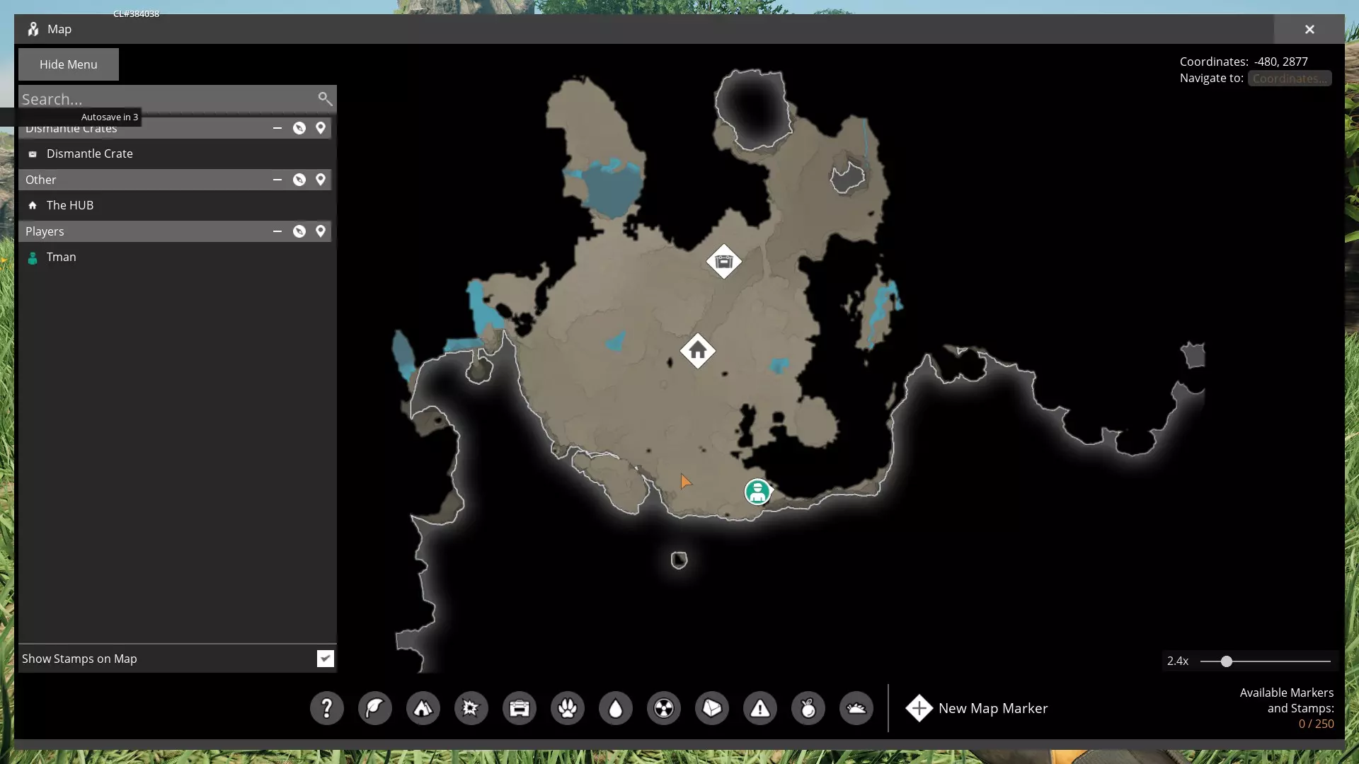 冒险准备 现在你已经完成了所有可用内容的自动化设置,是时候认真去探索了! 你可能已经进行过一些小型冒险来寻找资源节点和收集生物质,但现在所有部件都已实现自动化,你可以外出冒险,同时让这些部件自行建造! **带上以下物品非常重要!** 500混凝土 200铁棒 200铁板 10强化铁板 10转子 200电缆 500电线 200固态生物燃料 电锯 异星电击枪 大量绿宝石坚果和/或苍白浆果 这些物品能让你在外出时建造工坊、制作台、斜坡等设施。 你已经遇到过野猪并且成功击败了它们。当你从起始区域进一步探索时,会遇到更强大、更凶猛的生物。你会发现有些地方够不着,或者遇到需要建造桥梁才能进入或离开的缺口/洞穴。 我强烈建议专门创建一个冒险用的快捷栏,并将以下物品放在上面,通过按住ALT键滚动鼠标滚轮切换到这个快捷栏并设为常用! 1. 电线 2. 电线杆 3. 生物质燃烧器 5. 4米斜坡 6. 1米地基 7. 2米地基 8. 装备工作台 9. 制作台 出发前,确保生物质燃烧器已装满燃料,并且有足够的固体生物燃料维持其运行一段时间。如果生物质燃料不足,最好在出发前先快速收集补充!冒险 - 地图 你需要熟悉地图 - 按M键打开 打开地图后,你可以: 1. 查看已用V键扫描的矿物 - 它们会在25秒后消失 2. 在感兴趣的事物(资源节点、残骸、洞穴等)上放置标记 -> 点击【+】按钮,然后可以选择图标、颜色并为标记添加文字 3. 删除标记 随着你的冒险,地图会逐渐展开。刚开始时,地图会是这样的: