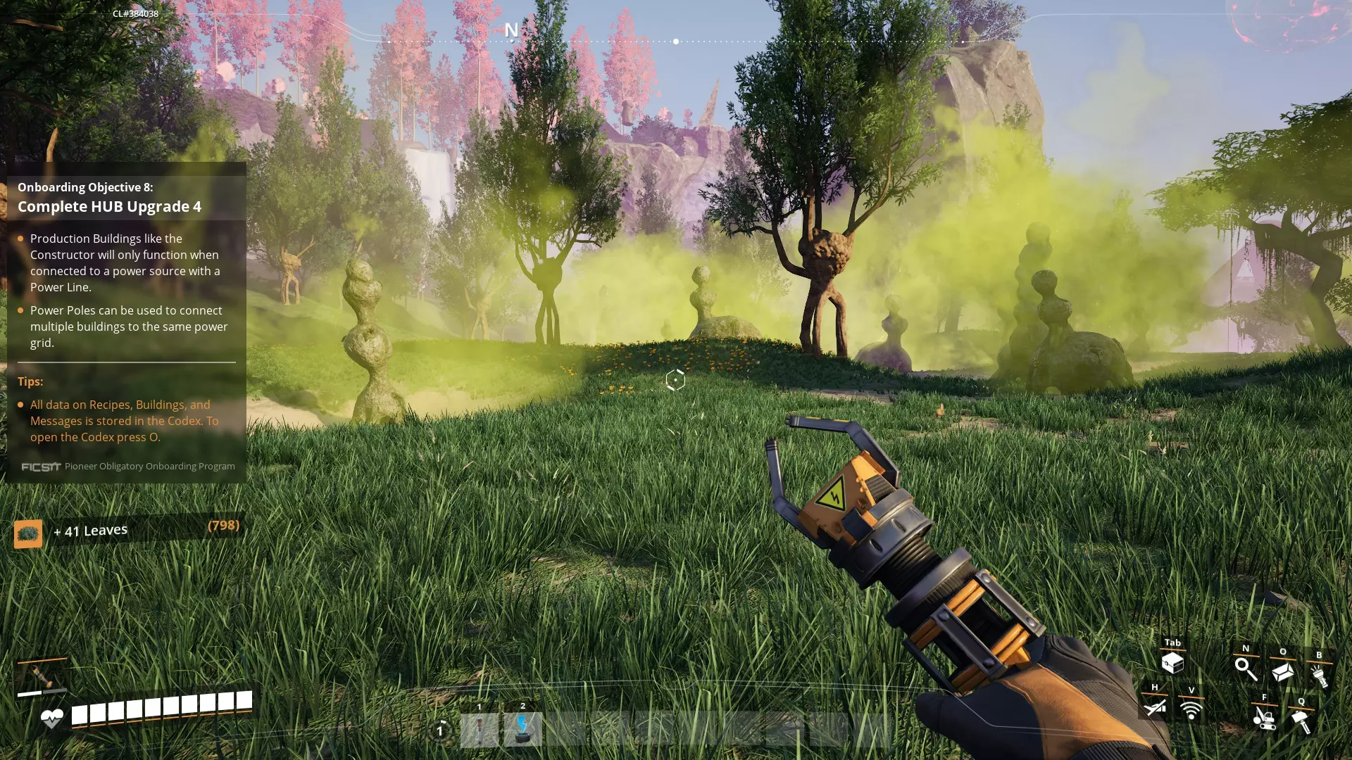 3. 在将生物质放入生物质燃烧器前,先在制作台上用树叶或木材制作生物质,这样比直接使用树叶或木材效率更高。此功能可能需要你击杀生物并收集其遗骸,或完成教程中的枢纽升级6后才能解锁。 4. 当你解锁MK1采矿机时,需要先移除资源节点顶部的矿物节点才能放置采矿机。只需走到矿物节点旁按E键进行开采,即可将其移除。
