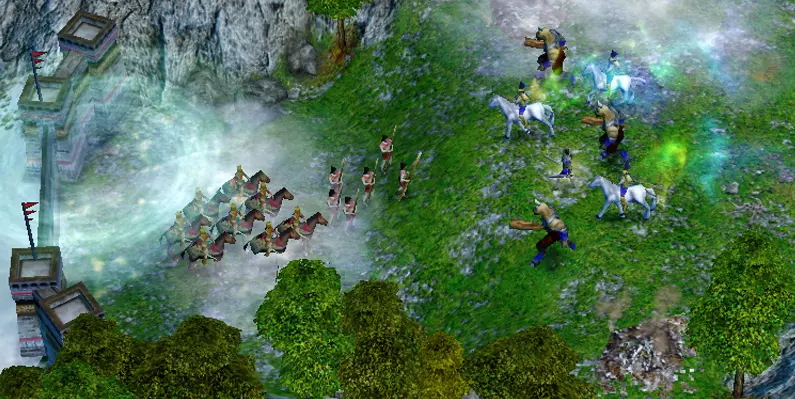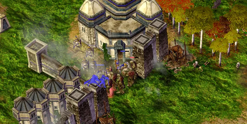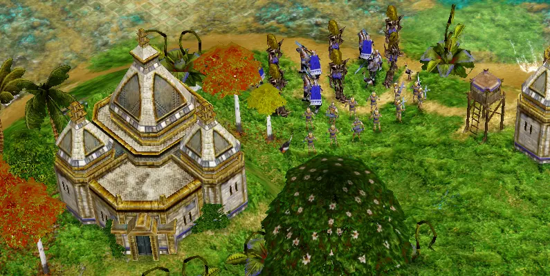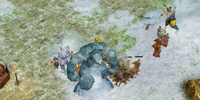 无需组建军队消灭敌人: 一开始,派遣所有工人修复五座寺庙。 利用足够的巨兽发起大胆冲锋,摧毁城镇中心。 派遣初始军队牵制敌军,同时让巨兽直接冲向城镇中心,好在敌军领地入口只有一道城门。 若敌人阻挡巨兽去路且无法绕行,可使用【冲击波】技能突破。