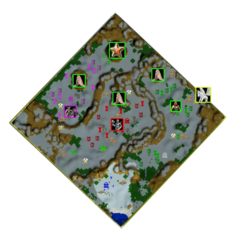 地图上有四座生物神庙,你可以通过它们组建一支强大的军队。