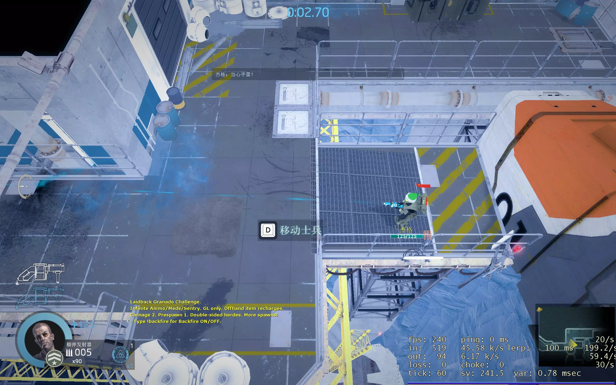 看看有没有啥用吧。 大部分都是我从别的大佬里面整合的七七八八的指令。 不好说出来哈UWU。 前言 本人小垃圾,对指令了解不太深透。不好之处感谢指出,哪里不好我可以改,请不要辱骂谢谢QWQ。(声明,本人很久没玩游戏了,游戏也有了几次更新,指令是否有用还是得看情况,请多以空气的指令为主) //杂项类// *基础: bind“你要绑定的按键”"指令" 1 bind 按键 "cl_emote // 绑定表情数字6是隐藏表情" 2 asw_marine_death_cam_slowdown 0 //关闭死亡慢放1是开 3 bind 按键 “cl_chatter 数字”角色说话59是死亡,60是惨叫 4 rd_override_allow_rotate_camera 1 //镜头旋转 5 asw_damageindicator_scale 0.5 //伤害HUD大小 6 asw_damageindicator_hurt_flash_alpha 0//处于低健康状态(0.0-1.0)时屏幕的alpha闪烁 7 asw_magazine_under_marine 0.5 //弹夹剩余低于一半报警(0.5=50%) 8 asw_marine_labels_cursor_maxdist 600 //人物脚下一直显示血量(1050 =全屏距离) 9 asw_fast_reload_under_marine 1 //在角色脚下显示一个换弹条 10 rd_fast_reload_under_marine_scale 6 //换弹条的长度 11 rd_fast_reload_under_marine_height_scale 6 //换弹条的高度 12 asw_medic_under_marine 0.5 //显示医疗报警图标队友血量在50%以下 13 asw_medic_under_marine_offscreen 1 //全屏显示医疗报警图标 14 rd_ammo_under_marine 0 //显示当前弹夹剩余子弹条 15 rd_show_mission_icon_loading 1 //显示任务图标在加载画面 16 rd_show_leaderboard_debrief 1 //结束任务后显示排行榜 17 asw_magazine_under_marine_recall_time 3 //正常换弹后图标显示的时间 18 asw_magazine_under_marine_frequency 60 //弹药图标闪烁的频率 19 asw_medic_under_marine_frequency 60 //医疗图标闪烁的频率 20 asw_medic_under_marine_recall_time 3 //正常呼叫医生后图标显示的时间 21 asw_spinning_stim_cam 0 //禁用慢动作引起的小窗口 22 asw_camera_shake 0 //屏幕震动关 23 asw_afk //休息 24 asw_hud_scale 1//右下角小地图变大 25 asw_suicide //自杀代码 26 bind ''按键 "ASW_ActivateSecondary" //快速放子弹 27 游戏中按Esc暂停,打开 options - keyboard - enabledevconsole 输入以下: sv_cheats 1;firstperson;asw_hide_marine;asw_controls 0;asw_debug_marine_aim 1; mat_fullbright 1 //手动开第一人称 28 rd_ready_mark_override 1//自动准备 29 FPS_MAX 数字 //限制最大帧数 30 mat_grain_enable 0 //禁用胶片颗粒效果 31 mat _ motion _ blur _ enabled 0//禁用运动模糊效果(当相机移动过快时) 32 mat _ vignette _ enable 0//禁用屏幕两侧的“变暗” 33 rd _ health _ effect 0//生命值低时禁用红屏闪烁 34 rd_hearbeat 0 //生命值低时禁用心跳声音 35 mat _ bloom _ scale factor _ scalar 0//禁用bloom效果 36 mat _ depth _ blur _ strength _ override 0//禁用深度模糊效果 37 net _ split packet _ max rate 120000//如果你房主,其他玩家会有更流畅的游戏(这个我不知道能不能用) 38 SV _ maxrate 120000//如果你房主,其他玩家会有更流畅的游戏(这个我不知道能不能用) 39 ASW _ realistic _ death _ chatter 1 ASW _ hear _ from _ marine 1//启用队员而外对话(这个我不知道能不能用) 40 net_graph 1 //显示帧数 41 bind “按键” “say 输入” // 绑得按键按下后可以说出指定的话 比如: bind “h''“say op”当你按下h后聊天栏目就会出现op两字 42 asw_pick_stim_music //自定义肾上腺素的音乐(挺没用的感觉哈哈哈) 43 asw_restart_mission //重启这关卡指令,建议打solo绑个按键来使用 44 rd_slowmo 0//关闭所有慢放 45 rd_commander_cam 0 //关闭老毕登 46 asw_suicide //自杀指令 47 asw_alien_shadows 0 //关闭虫子影子 48 asw_inspect_profile //在控制台显示陆战队员的个人信息(对不是玩家是陆战队员)完全没用图乐子的指令 49 asw_instant_restart 0 //完全重启整个游戏房间关卡 50 asw_LeaveMarine //休息指令 51 asw_melee_require_contact 1或者0//1的话近战需要接触才能过渡到下一个连击 0没限制 52 mat_hdr_level 0 //额怎么说呢这个指令,我个人理解为光照等级吧,只有2或者2一下的状态 就是你输入1其实和0一样的,你输入10和2是一样的,反正你使用就理解为输入0就能吧游戏中的所以阴影关了,这样你就完全看得清虫子了,而且不属于作弊指令UWU 大概这个样子: