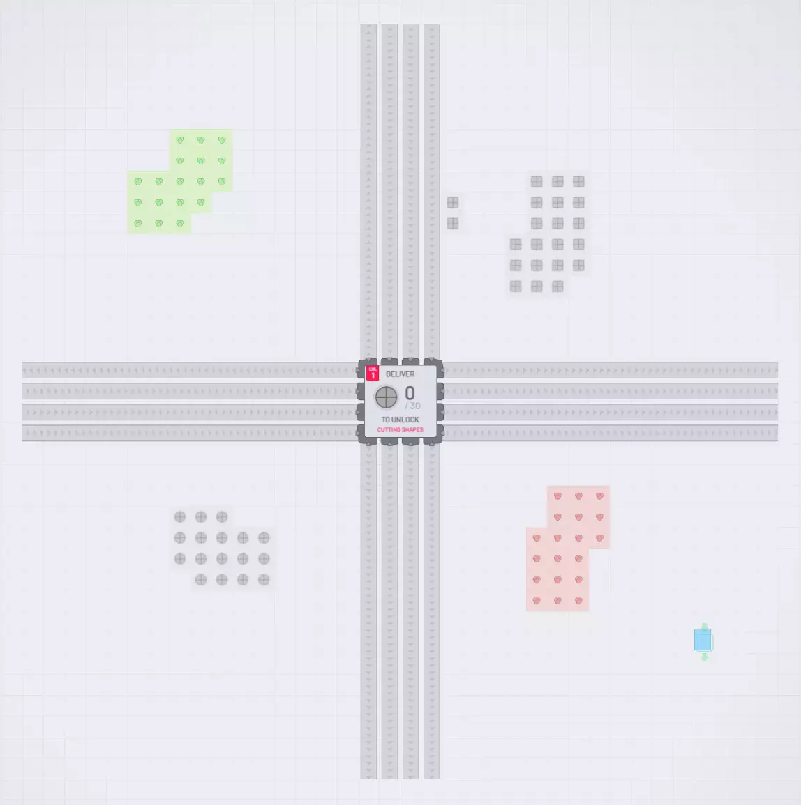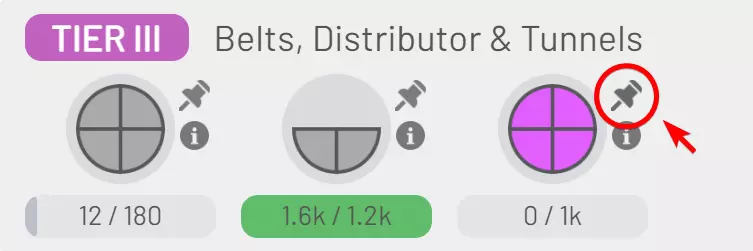 如果这只是为了立即输入机器,那没问题。否则,你会遇到传送带版的芝诺悖论,而且当你试图将一条传送带分配给多个需要相同高输入速率的设备时,会得到非常不均匀的分配。 不要立即删除内容,并继续为已完成的关卡输送形状 当然,这是有局限性的,因为在某些时候,再输送更多未涂色的圆形就变得毫无意义了。但一般来说,你应该让所有东西保持原位,直到以下情况之一发生: 1. 它需要用于其他东西,这时你可以把它留在那里,并将输出接入新装配线的输入; 2. 它“过时了”,因为你已经解锁了更新的设备,并且有了更好的设计; 3. 它不再有多大用处,只是碍事。这是因为速度升级(右上角的小星星按钮)每次升级“消耗”n个形状,并且在你获得V级以上升级之前,下一次升级的成本将包括所有之前的形状类型以及一个新的形状。每5级后,形状列表会“重置”,但在此之前,你仍需要之前的形状。 所以在确定不再需要更多形状进行下一次升级之前,不要停止交付形状。 之后,你可能需要之前制造的形状作为更复杂形状的一部分。因此,一旦交付白色圆形不再有意义,你很可能会遇到需要将白色圆形堆叠在上面的其他东西。这时就是将之前建造的白色圆形工厂重新用于新形状的好时机。你可能还是想再建一个白色圆圈工厂来生产更多白色圆圈,但通过复用现有的白色圆圈工厂,至少你不需要重建一个你已经删除的工厂。 不再有用时就删除东西 最终,你最初建造的一些设施可能会显得非常过时,因为它们是在你还没有解锁新设备的情况下建造的。这些设施也可能在生产你不再需要的东西。 一旦你有了使用新设备的更好设计,或者不再需要旧设施,那些过时的工厂区域应该立即被拆除,为新设施腾出空间。这将使你以后更容易找到可以复用的空间。完成关卡前将升级升至满级 这是因为如果不这样做,完成关卡会花费更长时间,而且完成关卡通常无助于加快进度。 通常情况下,如果你完成了所有可能的升级,或者接近完成,那么一条生产关卡目标形状的传送带就足以让你在离开游戏休息的这段时间内完成关卡。 当然,你也可以先进行大部分升级,然后着手处理关卡目标,在目标形状持续产出的同时去进行其他升级。 但不要落后超过一个升级等级,否则你会把游戏变成一款典型的放置游戏,让你陷入无尽的等待。“固定”你的升级目标 升级弹窗中有一个小的固定按钮。你可能会在急于构建奇特形状时最初忽略它。