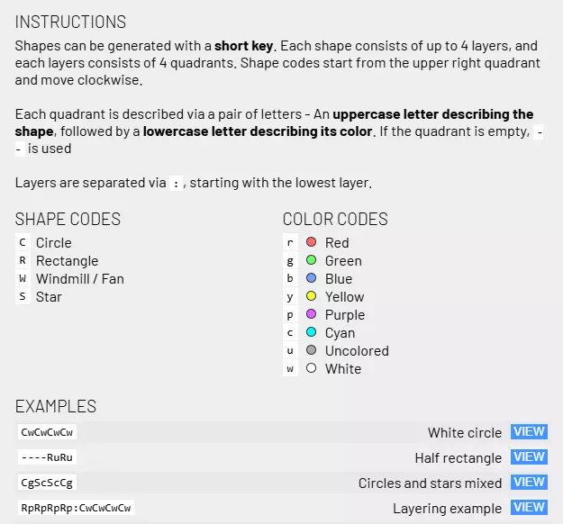 格式相当简单,但通常无需手动创建。大多数情况下,你只需点击目标形状上的小信息按钮,然后从“复制键”按钮进行复制粘贴即可。 遗憾的是,无法使用快捷键将文本与图形形状符号组合,因此请确保你的名称仅包含快捷键,不含其他文本。否则,标记的标签将显示为快捷键文本加上你添加的任何内容。 创建【蓝图区域】以存储常用设计 最终你将解锁一个名为【蓝图】的功能,实际上它就是用于瓷砖的复制/剪切和粘贴功能。(如果你在解锁蓝图前尝试使用这些功能,会收到“蓝图尚未解锁”的错误提示。)一旦解锁蓝图功能,你会发现只能进行复制、剪切和粘贴操作(粘贴前还可以旋转),但(至少在《形状工厂1》中)没有“蓝图数据库”来保存常用的设计以便粘贴。 不过这个问题很容易解决,只需按以下步骤操作: 1. 缩小地图并将视角平移到远离枢纽的某个角落区域,确保该区域不太可能用于建造任何功能性建筑。 2. 按M键为此区域创建一个标记,命名为“蓝图库”之类的明显名称。 3. 将任何你会经常复用的优秀设计(例如平行堆叠器阵列、切割机、混合器等)复制粘贴到这个区域。现在你随时都能跳回这个位置,获取这些设计中未经修改的干净版本进行复制粘贴。使用这种设计存储区域可以节省大量时间和减少麻烦。 自然生成的完整星形非常罕见,而自然生成的完整风车形则根本不存在。 查看地图你会发现,离枢纽越远,形状“矿床”中的形状就越不规则,混合程度也越高。 有两种形状类型在“纯”对称形态下要么罕见,要么不存在: 纯星形在“自然界”中很罕见,可能只有一两个矿床,因此找到带有半个星形的不规则形状,然后从中切割或熔合出完整的星形会更容易。不过,要搬运它们多远完全取决于你。纯风车(有时也称为风扇)完全不存在于自然中,必须通过切割和熔合不规则形状来“提炼”而成。以下是上述两种形状的图片。请注意,虽然它们看起来都有点像星形,并且在小尺寸时容易混淆,但它们并不相同。
