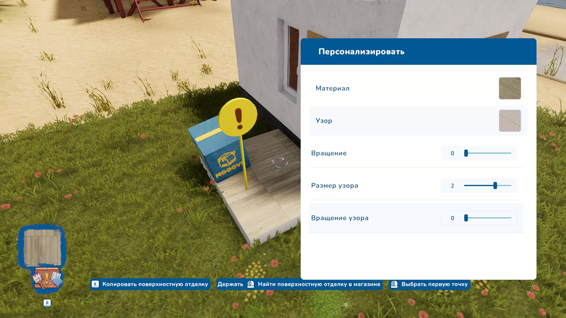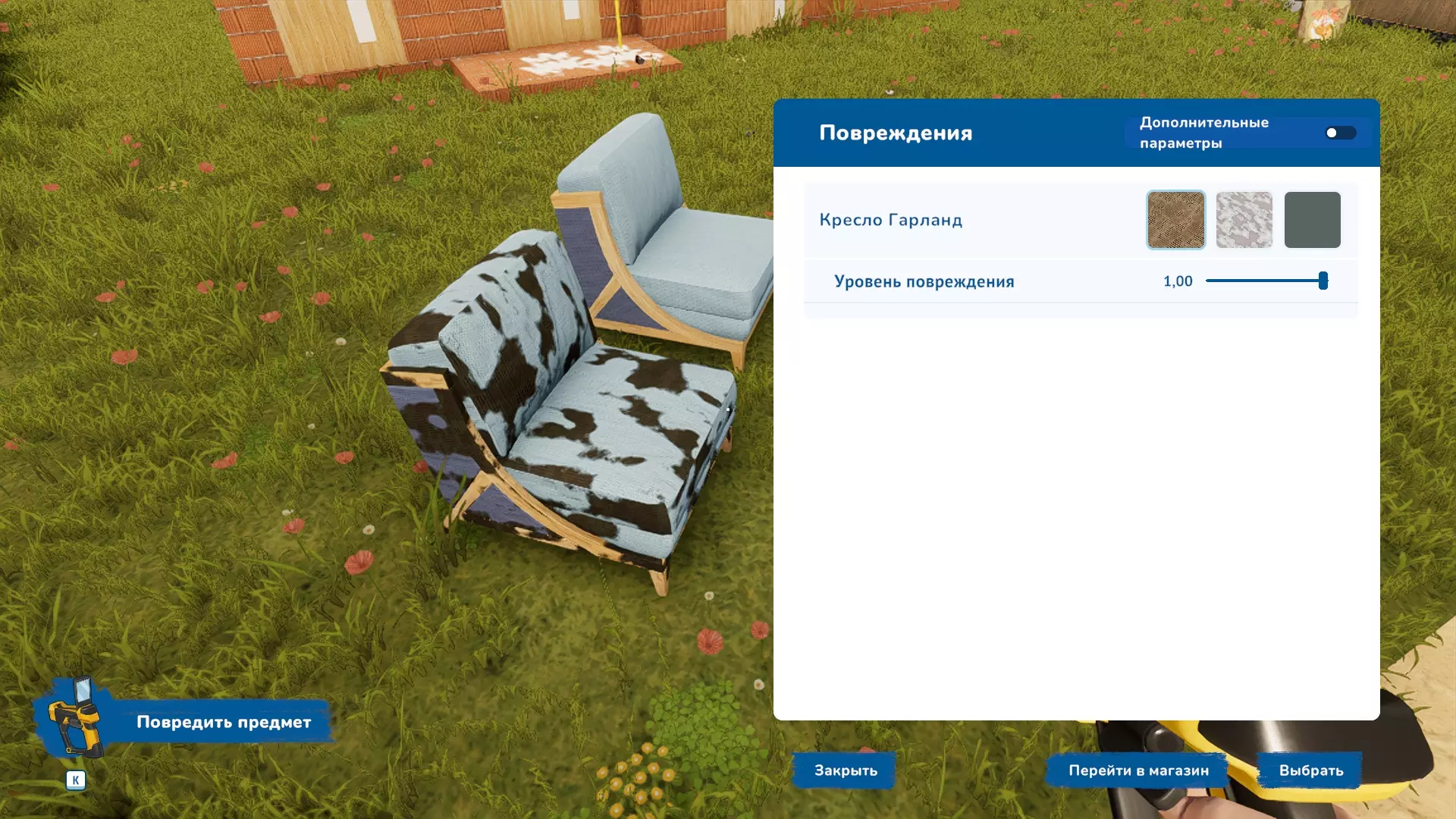 在“建造墙壁”工具中,也可以通过将鼠标悬停在所需材料上并按下【К】键来复制已有带装饰的墙壁样式,这样就无需频繁按【Й】键在不同样式间切换,能节省大量时间。 使用“手”工具悬停在任何已购买的物品上,按【Й】键可以复制该物品。另外,为了避免每次卖东西都要去找翻页器工具,可以直接拿起物品并按下【Delete】键进行出售。在翻转器工具中新增了【损坏物品】功能。即可以将物品变得破旧、肮脏、不美观。操作方法为:拿起翻转器工具,按下常用的【K】键,选择该模式。点击物品后会打开【劣化】面板。