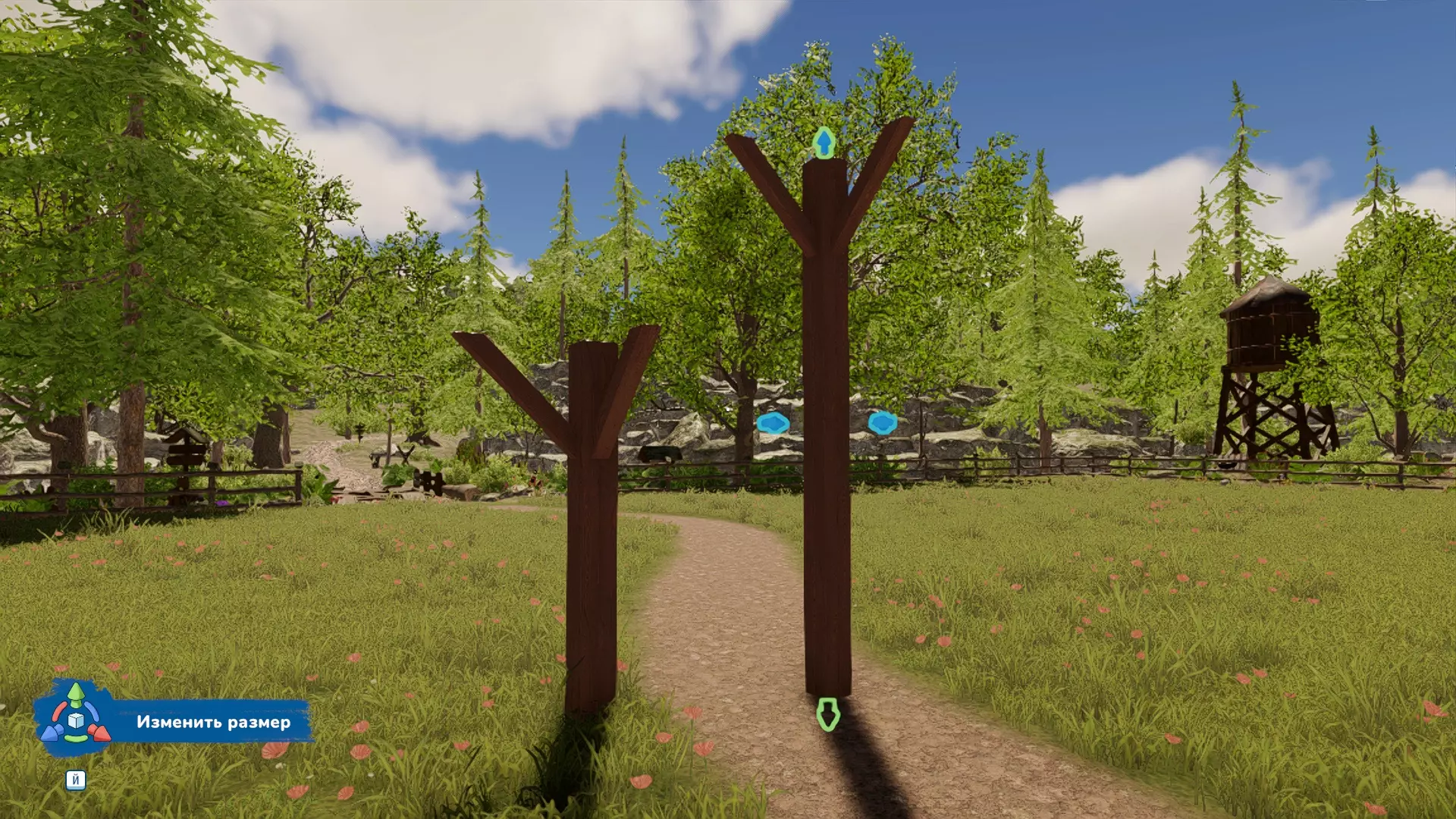 按Y键可以将变换模式切换为“调整大小”。遗憾的是,该功能并非在所有场景下都能使用。目前发现仅在沙盒模式的柱子上有效,例如可以调整它们的长度。