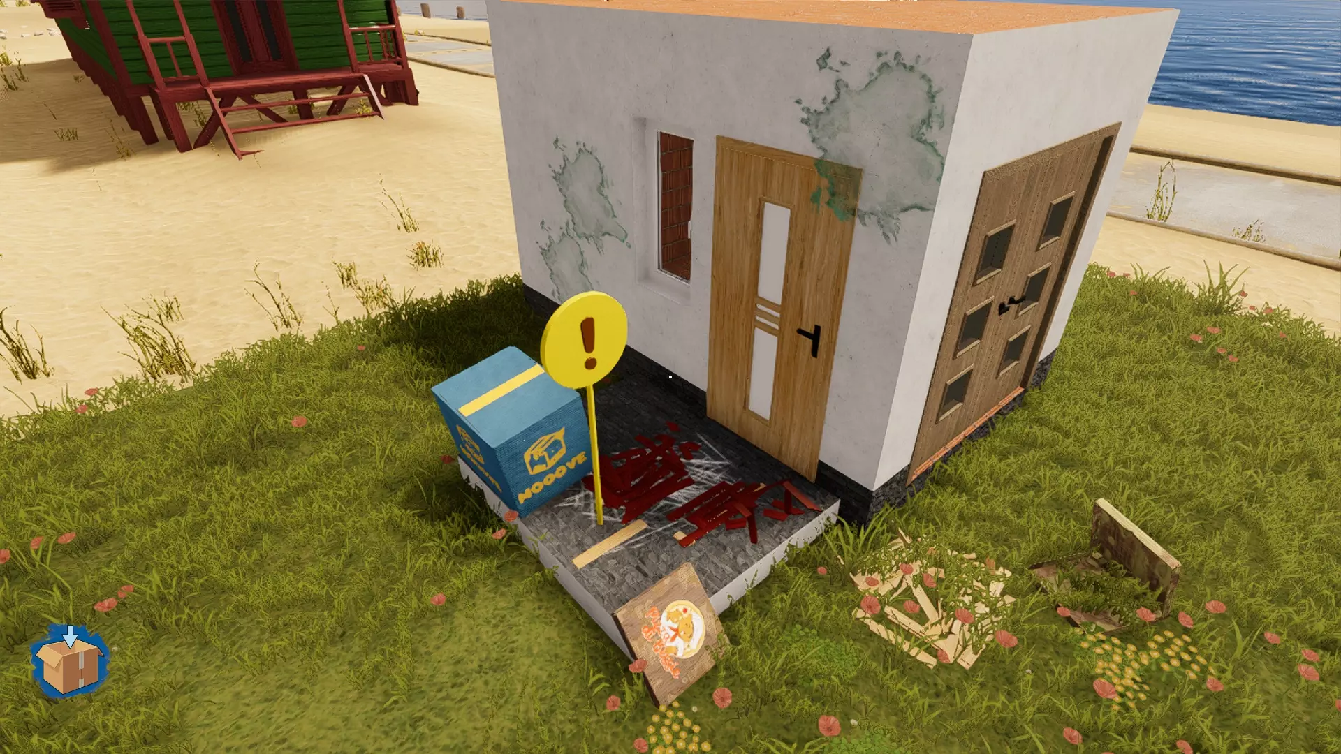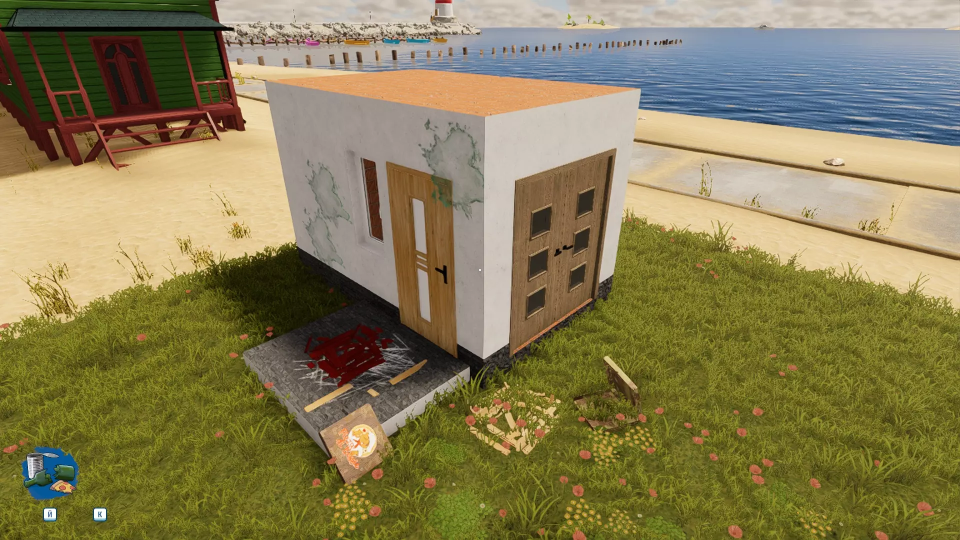 我们的房子目前没有污渍、垃圾和任务,只是外观不太好的普通房子。让我们为它增添一些“美感”吧。 4. 如何创建清洁污渍和污垢的任务? 先从污渍开始。在右键菜单中找到“污渍和污垢”工具。这里的操作很简单,和游戏中所有工具的使用方式一样,都可以通过屏幕底部的提示面板来了解。按住Alt键并滚动鼠标中键(以下简称鼠标中键),选择更适合自己的污渍类型。按下我们神圣的J键可以更详细地创建污渍,为其赋予颜色和大小。 放置污渍时,务必确保任何污渍以及后续的任何物体都不会陷入纹理中。按此方法依次操作。 要创建清理垃圾的任务,无需使用特定的任务创建工具。如果您放置了污渍或垃圾,会自动出现清理和丢弃的任务。 5.垃圾生成工具 接下来是“垃圾生成器”工具。按下Y键会打开面板,和污渍工具的面板类似。不过这里的按钮更多,但几乎都是不同种类的垃圾。 垃圾生成有两种模式:放置模式和散布模式。这很容易理解。放置模式用于更细致、整齐地设计您的混乱场景。把垃圾扔进“随意丢弃”区域,然后在“放置”模式下按Y键,就可以将垃圾移动到需要的位置,比如当你扔偏了或者垃圾摆放得太规整时。选择你喜欢的垃圾样式,点击“是”,然后关闭面板即可。