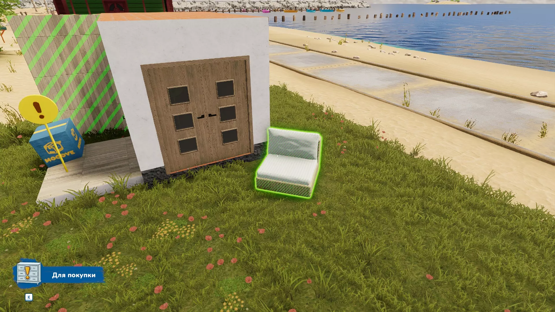 现在我们切换到“购买模式”。从商店中取出玩家需要购买的椅子,进行放置。购买任务已创建,椅子呈绿色闪烁状态。 毕竟,谁不想住得舒适些呢。