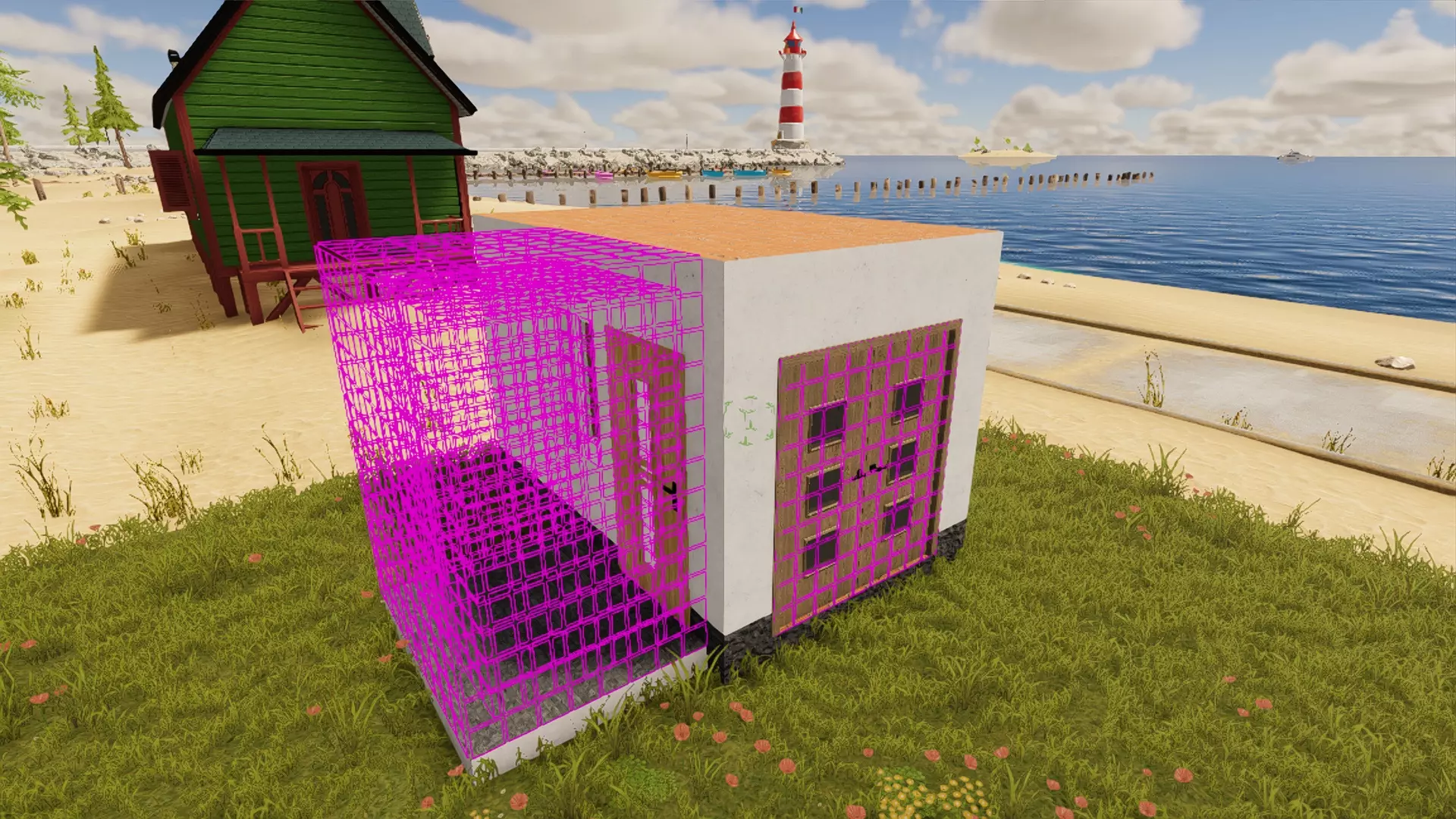 现在可以开始制造混乱了。 3. 虚拟墙壁及其作用 在沙盒模式中创建任务的首要规则是:游戏会将所有具有天花板、地板和4面墙壁的空间视为独立区域,每个区域包含独立任务。这里需要注意的是,这些墙壁不一定需要让玩家可见。例如,如果你计划在开放式露台设计一个独立任务,同时在房屋外部的花园设计其他独立任务,游戏会将这些区域视为同一个房间,任务也会合并在一起,这会不太方便。 因此,【虚拟墙壁】工具可以解决这个问题。玩家不会看到虚拟墙壁,但我们可以通过它来划分空间。使用同一个工具并按下键盘上的【K】键即可移除虚拟墙壁。切换模式后,您可以选择要拆除的墙壁。这些墙壁的建造方式与普通墙壁完全相同。同样,您可以将相邻的客厅和厨房分隔成两个区域。