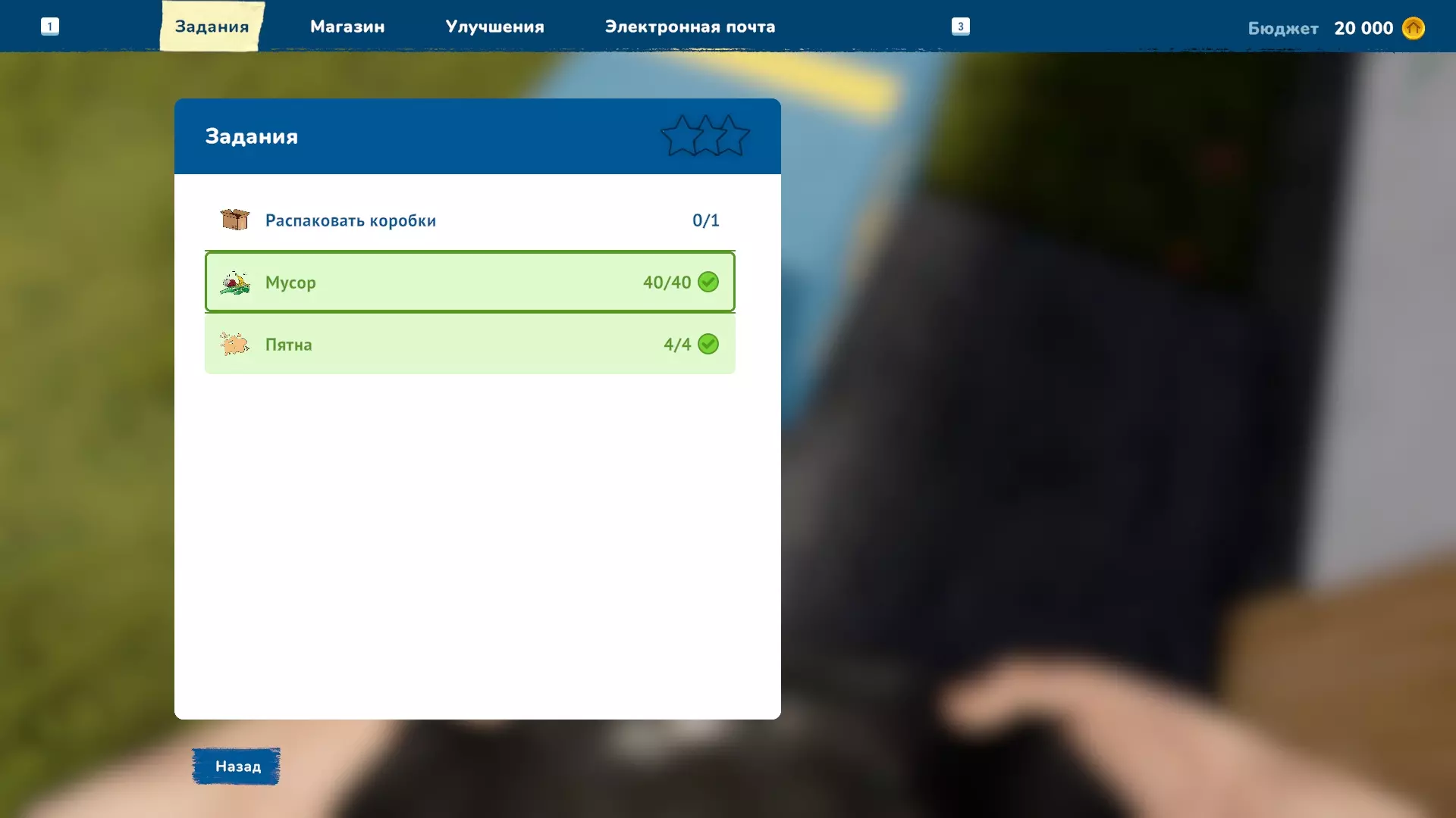 在商店中还可以找到我们熟悉的【!】符号,它表示房间内有未完成的任务。你也可以将它们放置在房间的各个区域。在商店中搜索【任务】就能找到这个物品,然后进行放置。 在商店中还要寻找会包含在箱子里的物品,并将它们放在箱子旁边。并非所有物品都能放进箱子,通常可以放入装饰性物品,例如海报、花瓶、电脑等。接下来选择【拆包任务】工具。选中想要放入箱子的物品,将鼠标对准箱子并按下【U】键。物品即放入箱中。若要将物品取出,将鼠标对准箱子并按下【K】键即可。 任务已生成。稍后将说明如何进行验证。