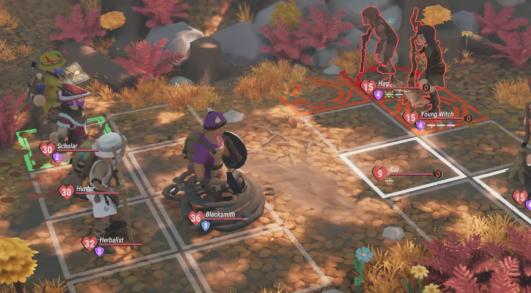 但别以为一切都是阳光和棒棒糖。法鲁尔的腐化生物和敌人可不介意利用战斗网格来谋取私利。 后排那个脆弱的玻璃大炮学者,可能会被敌人的皇家卫兵迅速拉到前排,变成炮灰! 【站位】 你在战斗网格中的站位可能是决定成败的关键!如果你扮演坦克角色,或许会想站在盟友前方来触发你的“守护”被动,从而阻止所有针对后排盟友的敌人攻击。 但等等,假设你嘲讽了敌人,希望以此保护盟友。你们挤在一起,结果——糟了!范围伤害!你的坦克站位反而帮了倒忙,因为你基本上成了敌人造成最大伤害的目标!