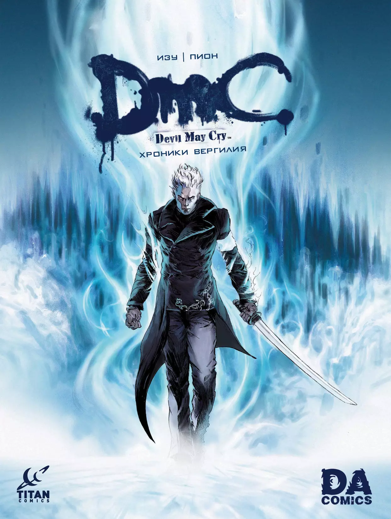 出版商:Titan Comics; 发行日期:2013年5月22日; 编剧:IZU; 绘画:帕特里克·皮永; 排版:罗宾·雷希特; 上色:Digikore Studio; 封面:让·巴斯蒂德、帕特里克·皮永; 监制:Elyum Studio; 翻译:马克·麦肯齐-雷; 翻译:NIKITOZIK; 设计:TenTonBrick。故事从凯特的精神投影在“吉恩”遇到维尔吉利亚开始,维尔吉利亚因女孩在得知但丁的下落之前就离开了自己的身体而感到沮丧。当她醒来继续寻找时,她的朋友基利安找到了她。在“吉恩”,还有数百名因被指控恐怖主义而被关押的人。凯特询问囚犯们是否有人听说过但丁,这让狱警勃然大怒并开始屠杀囚犯。然而,在恶魔们接近凯特之前,维吉尔找到了她。当维吉尔问及他的弟弟时,凯特解释说但丁已经不在监狱里了,这让这位 nephilim(拿非利人)大为震惊,因为此前从未有人能从“吉恩”监狱逃脱。谈话期间,他们遇到了实力远超维吉尔的奥尼克斯。凯特和维吉尔无力对抗强大的恶魔,最终坠入了监狱更深层。当维吉尔苏醒过来时,他发现凯特能够以灵体形态在监狱中穿梭。她向维吉尔解释道,【盖亚】是连接两个世界的巨大裂隙,并且她知道如何找到但丁。他们一同前往中央控制室——监狱的“大脑”,这让女孩耗费了大量体力。在这里,凯特成功接入“大脑”并找到了关于但丁的数据,她将这些数据展示给了维吉尔。但丁成功唤醒了自己的隐藏力量并逃出了监狱。凯特和维吉尔在不知不觉中,向监狱提供了其长期搜寻的逃犯信息:他确实是 nephilim(拿非利人),也是传奇人物斯巴达的儿子。维吉尔和凯特不得不回到人类世界,而监狱派出了奥尼克斯追踪他们。维吉尔使用恶魔触发器破坏了奥尼克斯的装甲。因此,他们的灵魂被释放并融合成一个巨大的恶魔,显露出其真实形态。这座监狱本身也是这个恶魔的一部分。维吉尔和凯特不得不逃跑。为了对抗更强的敌人,维吉尔决定再次使用恶魔触发器,但凯特警告他这可能很危险,因为每次使用新能力时,维吉尔都有可能无法恢复人性。相反,她提议将两人的力量结合起来:凯特的能力可以找到裂隙,而维吉尔的剑则能创造传送门。由于“Геены”“Кэт”“Вергилия”“нефилим”“Адский курок”“Орден”等专有名词缺乏明确的官方中文译名或通用翻译标准,且内容涉及特定作品背景,无法准确翻译,故删除。三个月后,但丁在剧烈的宿醉中醒来,屏幕上弹出一条黑客信息:一个戴着面具的人警告人们有恶魔的阴谋,随后传来敲门声。一个陌生女子提醒但丁必须去见“他”,更重要的是,恶魔已经找到他了。最后:我非常希望您能满意,因为您已经扩展了关于《DmC:鬼泣》系列重启的知识,以及了解了两个兄弟与成群恶魔战斗的故事,他们还有忠实的伙伴和朋友相助。