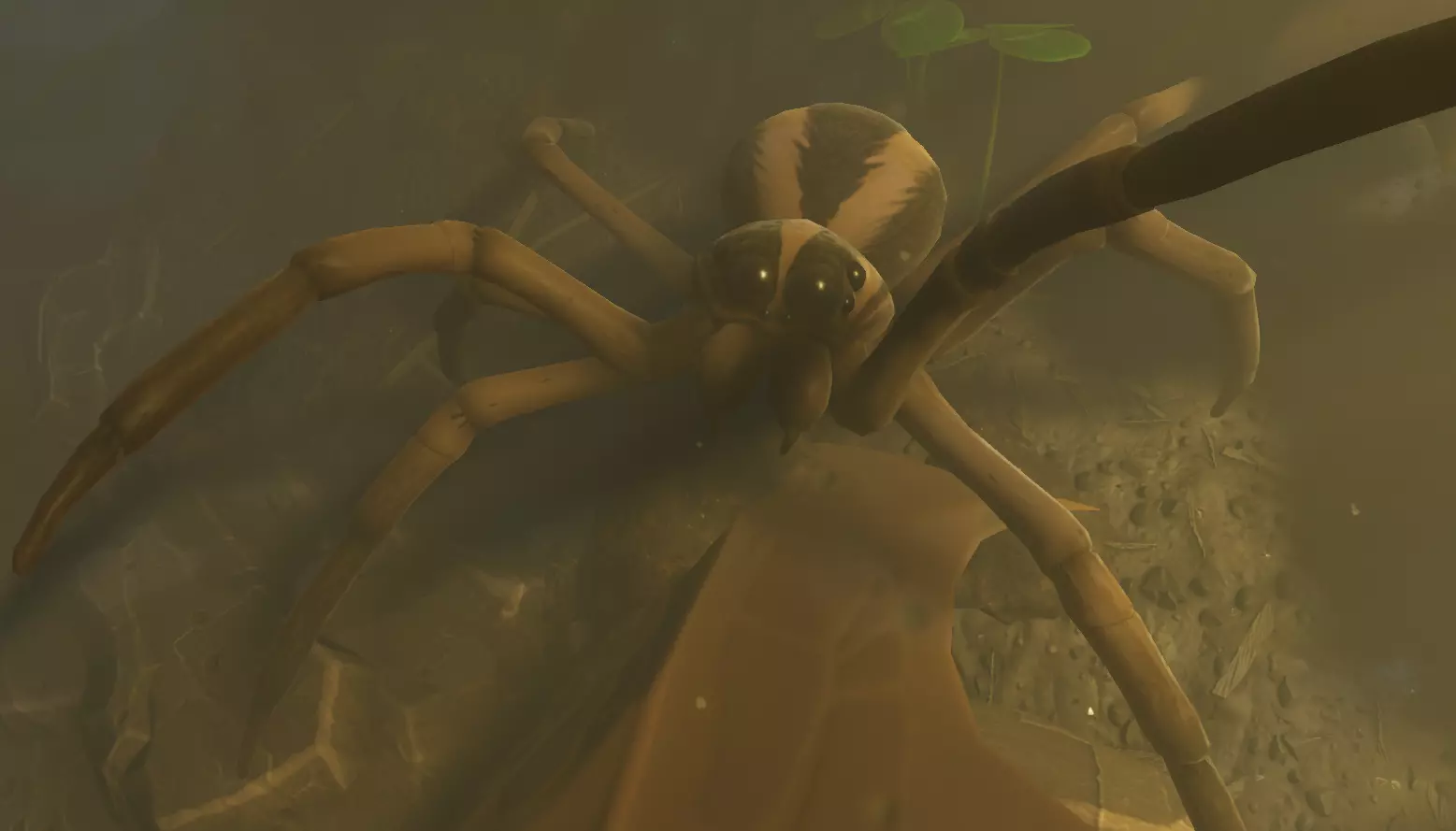 在《禁闭求生》中,圆蛛的形象描绘十分奇特。它们在草地上四处游荡,偶尔会在草或杂草上留下小块蛛网。如果玩家进入它们的领地或惊扰了它们的蛛网,它们会主动追逐并攻击玩家。 这与现实中的园蛛形象极为不符。现实中的园蛛通常会待在膝盖高度左右的蛛网中央,并不喜欢离开蛛网,但有时会退到蛛网中休息。蛛网前后的“之字形”结构被认为是用来警告鸟类和其他大型飞行动物不要靠近蛛网的。织网蛛是后续对付狼蛛的良好练习对象,也是获取毒液和蜘蛛部件的较简单来源,值得留着它们来收集蛛丝。它们不会掉落蜘蛛毒牙,这就引出了你将面对的最麻烦的生物…… 狼蛛 - rabidosa rabida/Pardosa hyperborea