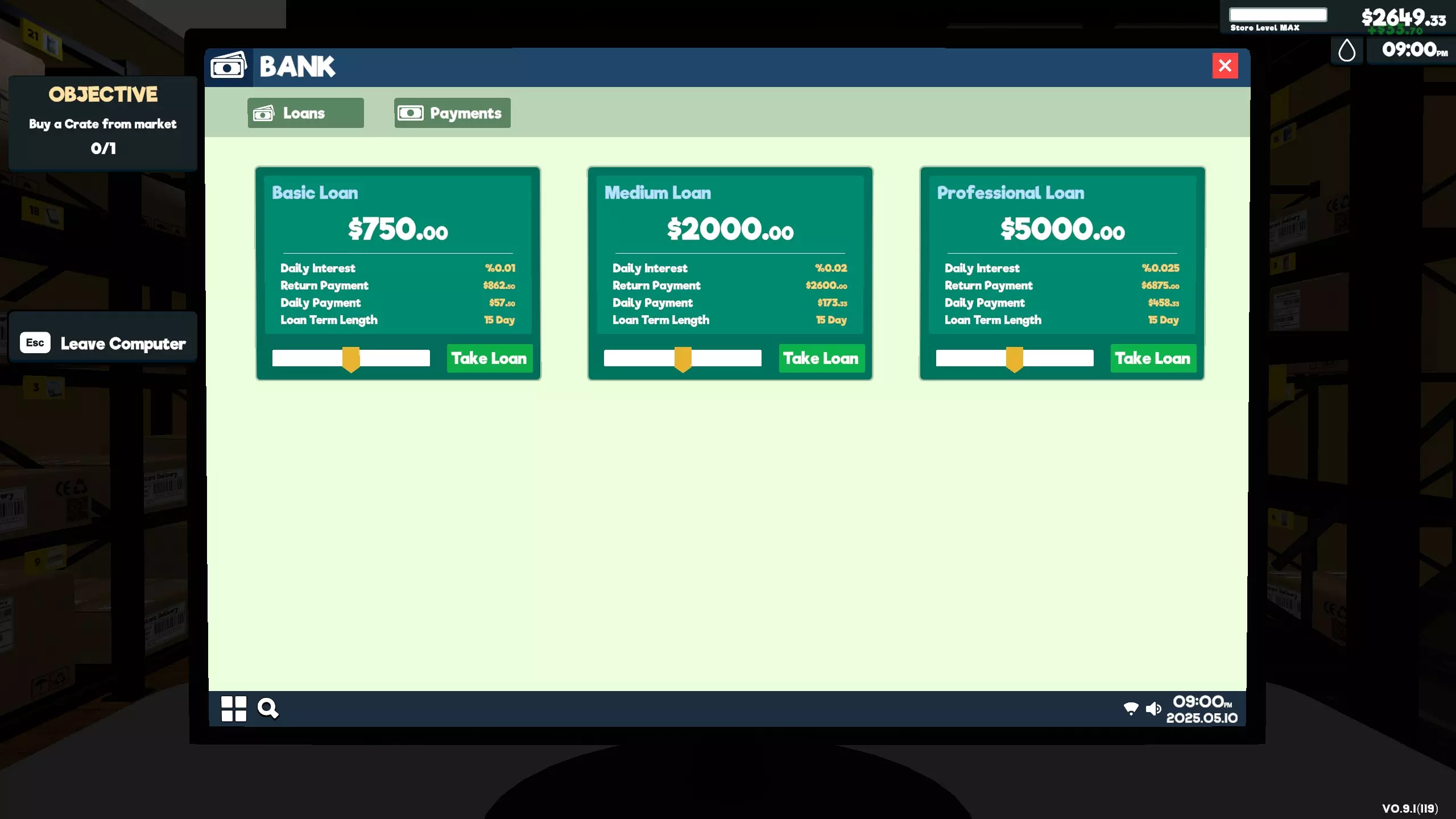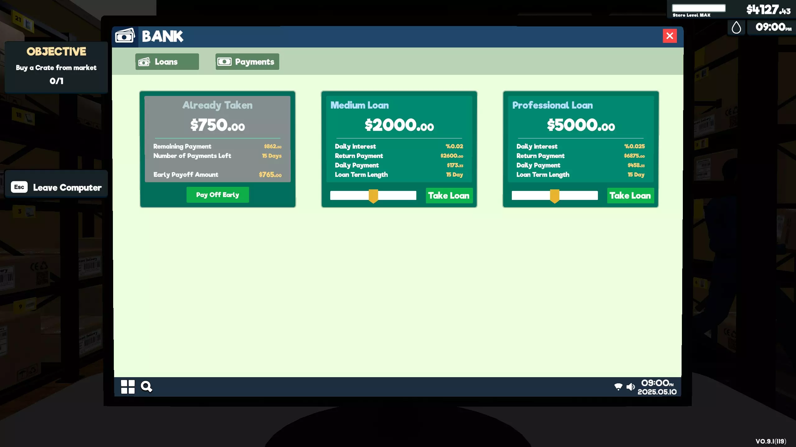最终 全额偿还银行贷款债务 通过商店电脑申请银行贷款后,将其还清。你可以选择立即提前还清,也可以等待所有每日分期付款全部支付完毕。