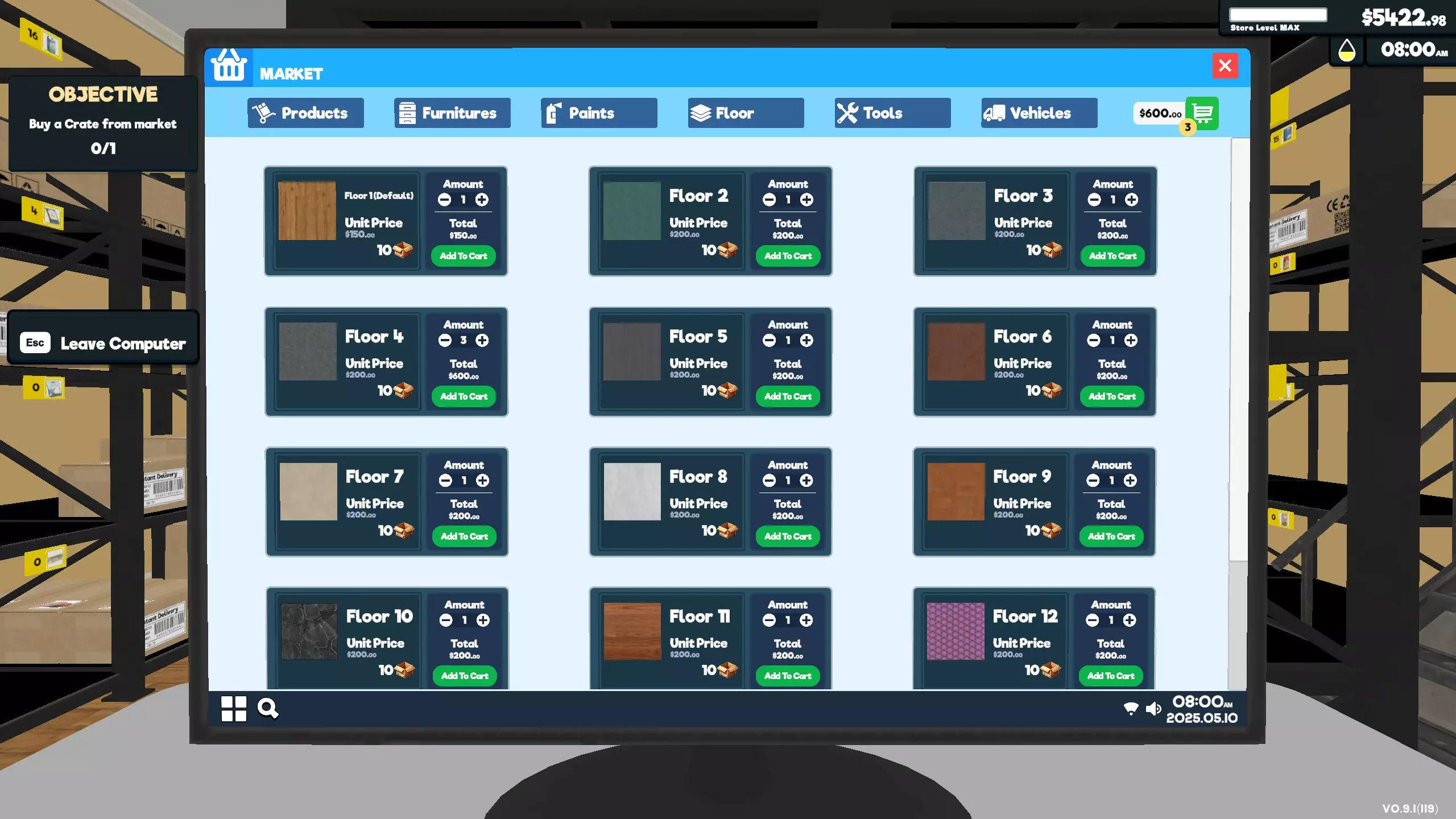 这些地板是用来走的 更换30块地板 从商店电脑市场购买3个地板盒,每个盒子包含10块地板。只需手持地板盒时看向地板,即可更换那块地砖。
