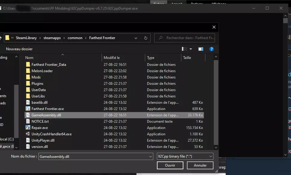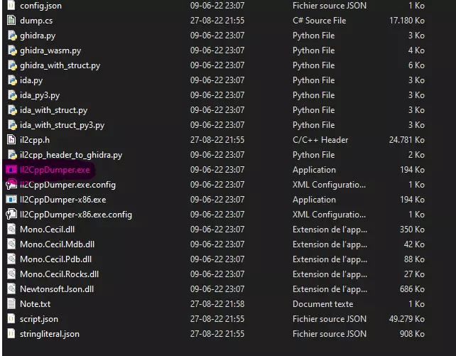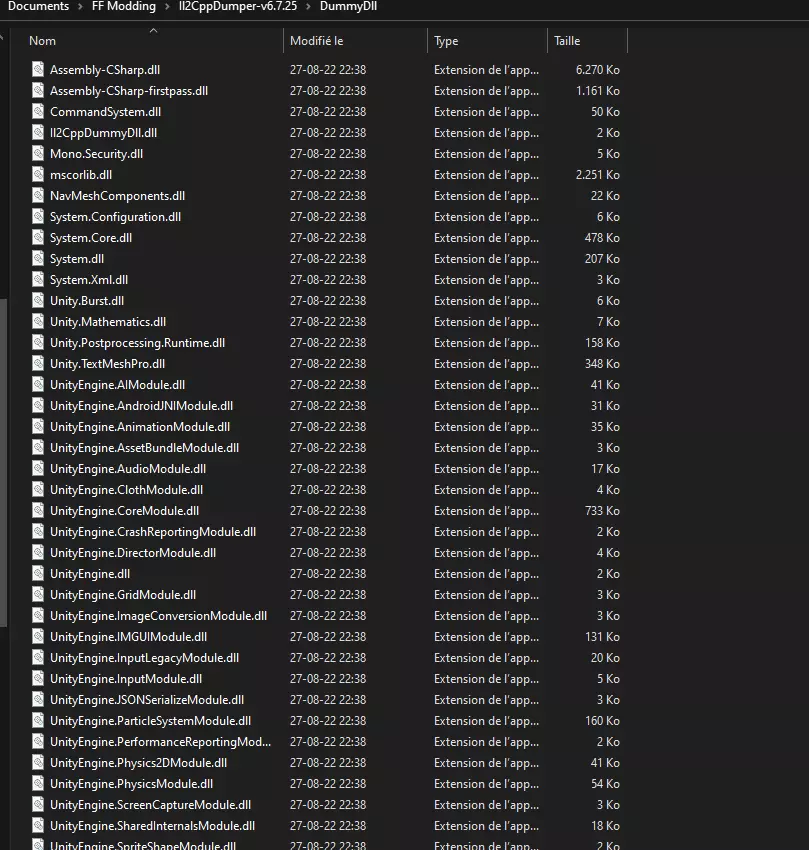 注意:你必须重复此步骤以保持模组更新! 在Il2CppDumper.exe文件夹中已创建一个名为DummyDll的新文件夹。