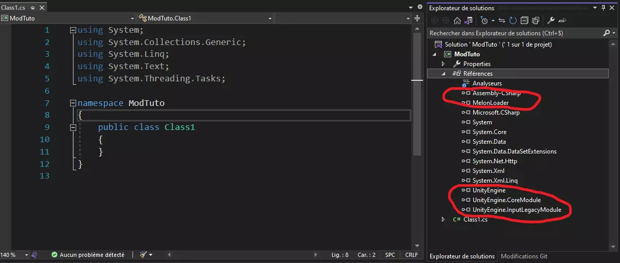 让我们添加来自MelonLoader的DLL以及从《漫漫长夜》中提取的DLL。 操作方法如下:右键点击“引用”,然后添加以下DLL: Assembly-CSharp MelonLoader UnityEngine UnityEngine.CoreModule UnityEngine.InputLegacyModule