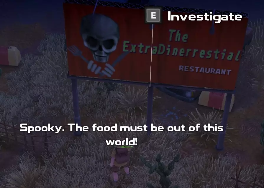 10. 彩蛋:外星食客餐厅 【开发者已证实该理论!】 此处的“彩蛋”之所以加引号,是因为它并非真正隐藏,但它的含义和所指可能比人们预期的更为深远。 沙漠中有一家名为“外星食客餐厅”的 diner,它以该岛曾有外星人到访(并为岛上的古代文明带来了先进技术)作为宣传点。餐厅内的装饰也围绕这一主题展开。 尽管有人可能会推测逃生舱撞击坑与据称“坠毁在沙漠中的物体”是否为同一事物,但这家 diner 很可能是在致敬美国内华达州51区和/或新墨西哥州罗斯威尔附近的 diner。餐厅在某种程度上所提及的罗斯威尔事件发生于1947年7月8日,颇具争议。尽管一些人过去和现在都声称有一个“飞碟”在那里坠毁,但回收了残骸并封锁了坠机现场的空军否认了任何此类说法(后来有人声称那是来自绝密“莫古尔计划”的气球)。