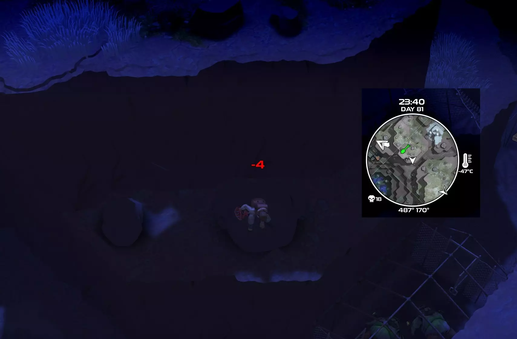 (截图中没有门旁边的红色箱子,因为我已经把它破坏了。 目标:门旁边的红色箱子及其内的物品。 建议:小心投掷手榴弹来破坏箱子,这样可以完全避免“坠落死亡”的问题。 另一种方法:精准跳落到红色箱子上,然后下去 loot【掠夺】它。如果跳到箱子旁边的地面上,你就会死亡。跳下去之后无法再爬上来或越过栏杆,所以你必须使用自杀药片回到上一个营火处。——这种方法很难成功!)你将获得: 若尚未学会“蘑菇沙拉”食谱(效果为强力攻击伤害+50%),则可获得该食谱;若已学会(例如通过烹饪指南学会),则会获得一些材料。此外,使用手榴弹摧毁宝箱时也应能获得该食谱。 不过,在皇冠区域的避难所地堡旁、着陆垫附近及其他位置也能找到带棱角的拱顶门。很可能存在尚未开放的“下皇冠”区域,后续将允许我们打开这个红色宝箱。 (*1)1号门(位于皇冠区域 934° 472°)