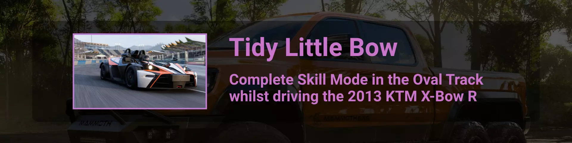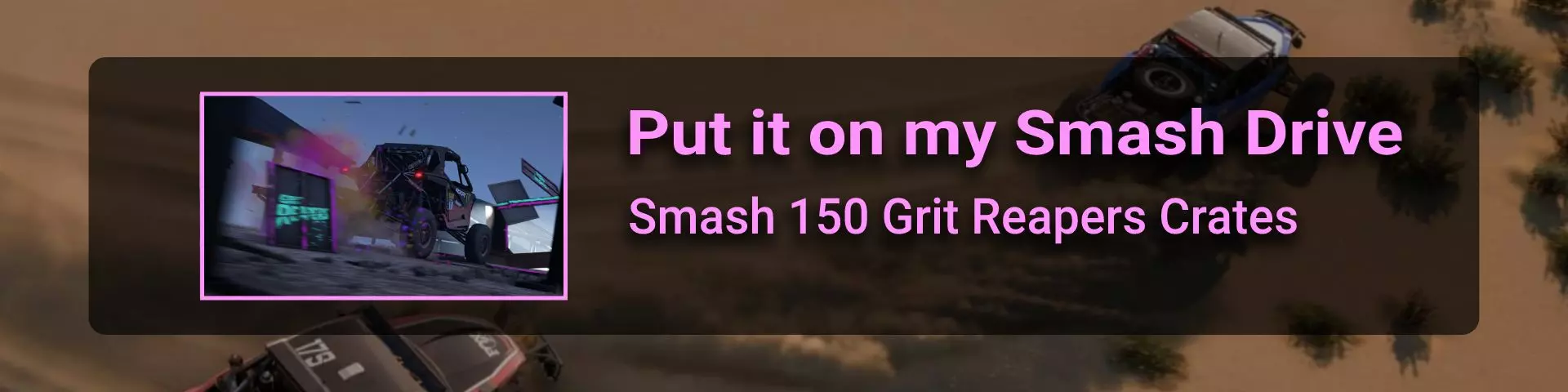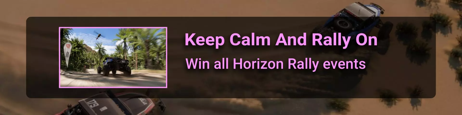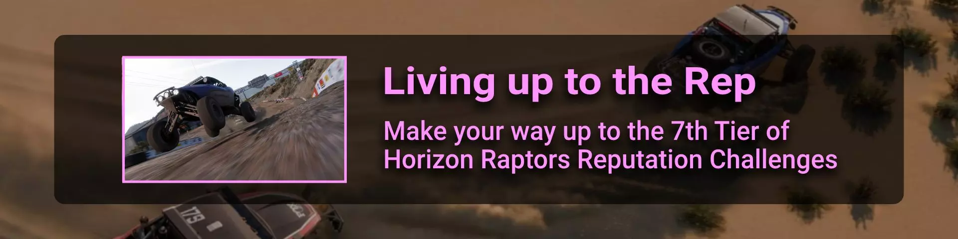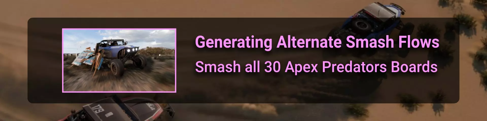 在本节中,我将介绍《极限竞速:地平线》系列玩家在环道赛中可能遇到的问题。 如果你计划达成100%成就,那么最好立即留意其中最特别的几个:Seasoned Veteran、Min, Meet Max、Gotta Smash 'Em All。 这些成就的难点在于需要等待季节和篇章的更替。季节每周四格林尼治标准时间14:30更新,而篇章则在经历4个季节的周期后每月更新一次。 Seasoned Veteran和Min, Meet Max这两个成就如果能赶上第一个季节,可在1个月内完成。关键是要完成环道赛列表中的所有任务(详情见终点线部分)。要解锁【Gotta Smash 'Em All】成就需要一个多月的时间,因为在第一系列期间,5个任务中只能完成1个(详情见“碰撞测试”部分)。这些任务本身难度不高,只需摧毁地图上的某些物体,例如仙人掌。问题在于必须等待这些任务出现在任务列表中。希望开发者能解决这个问题,让这类任务每个赛季至少出现一次。