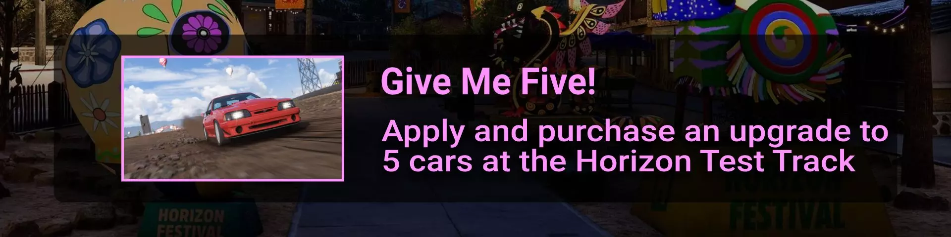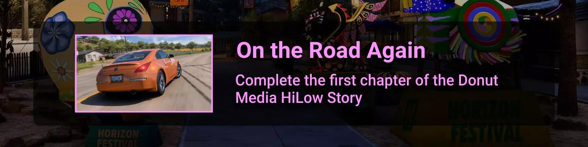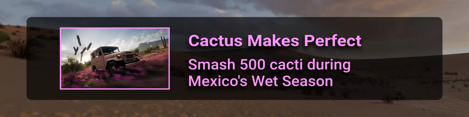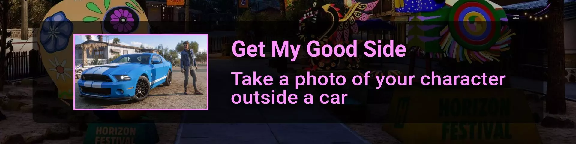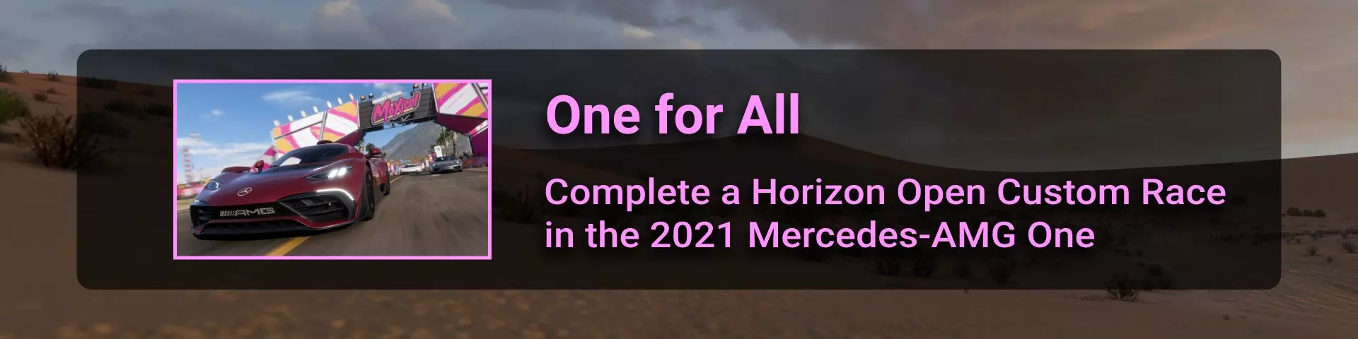 完成序章后,地平线街机活动将在墨西哥各地刷新。驾驶到这些粉色圆圈处(或直接传送),等待活动开始并参与其中。你不需要赢得活动,但尝试一下是值得的,因为你需要赢得5场活动才能解锁【Unlimited Prowess!】成就。 活动外观如下: