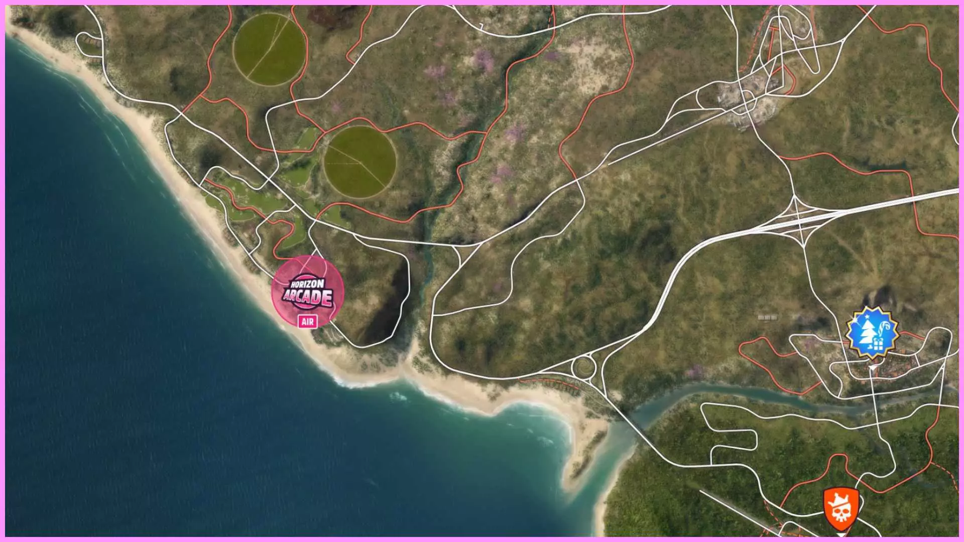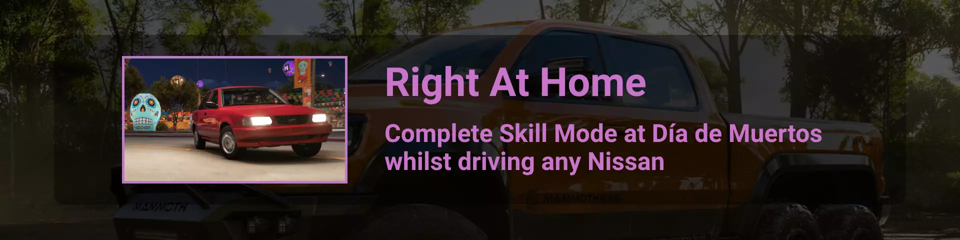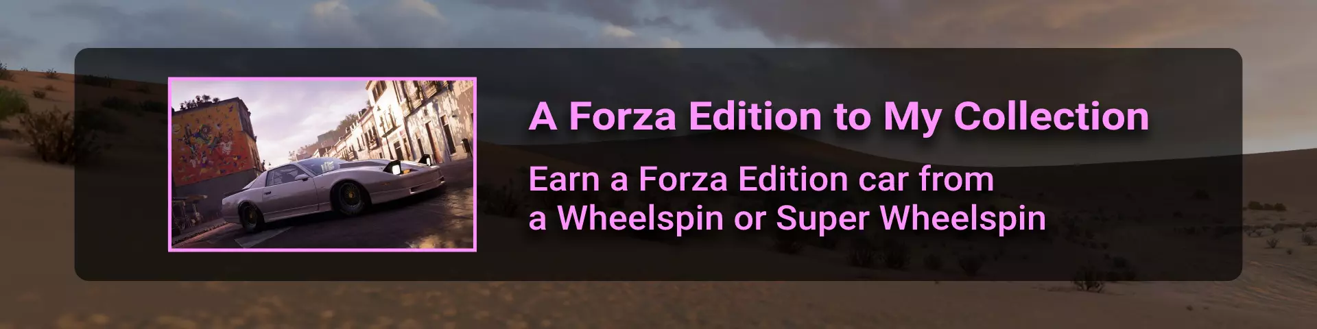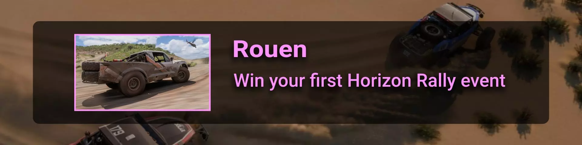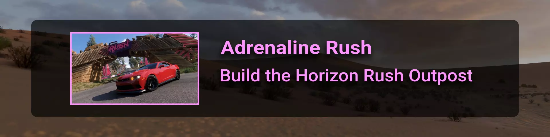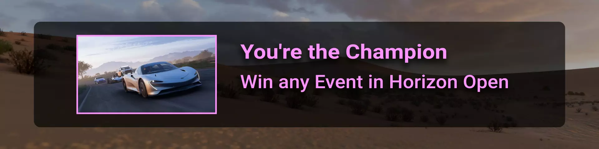完成序章后,地平线街机活动将在墨西哥各地刷新。驾驶到这些粉色圆圈处(或直接传送),等待活动开始并参与其中。你不需要赢得活动,但尝试一下是值得的,因为你需要赢得5场活动才能解锁【Unlimited Prowess!】成就。 活动外观如下: