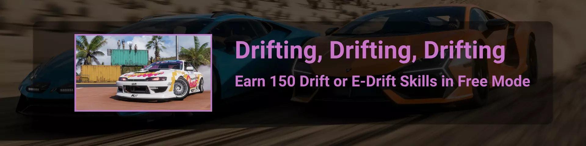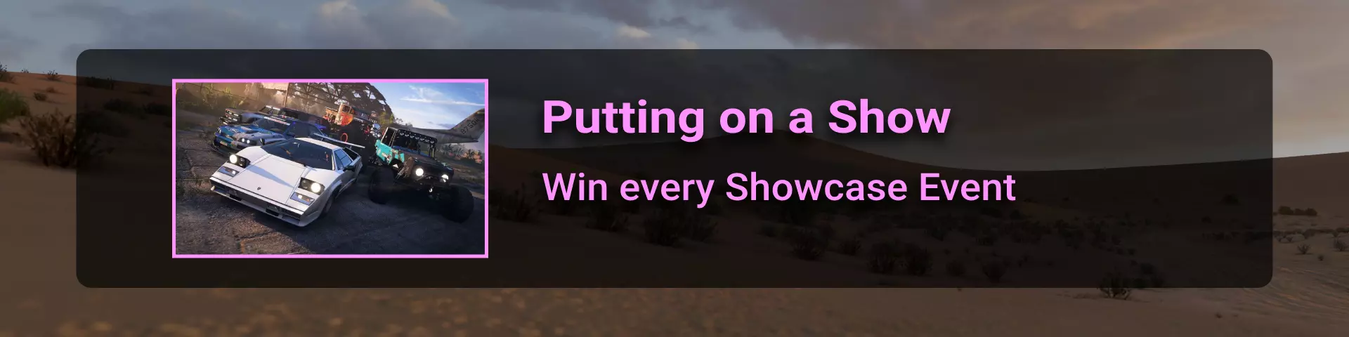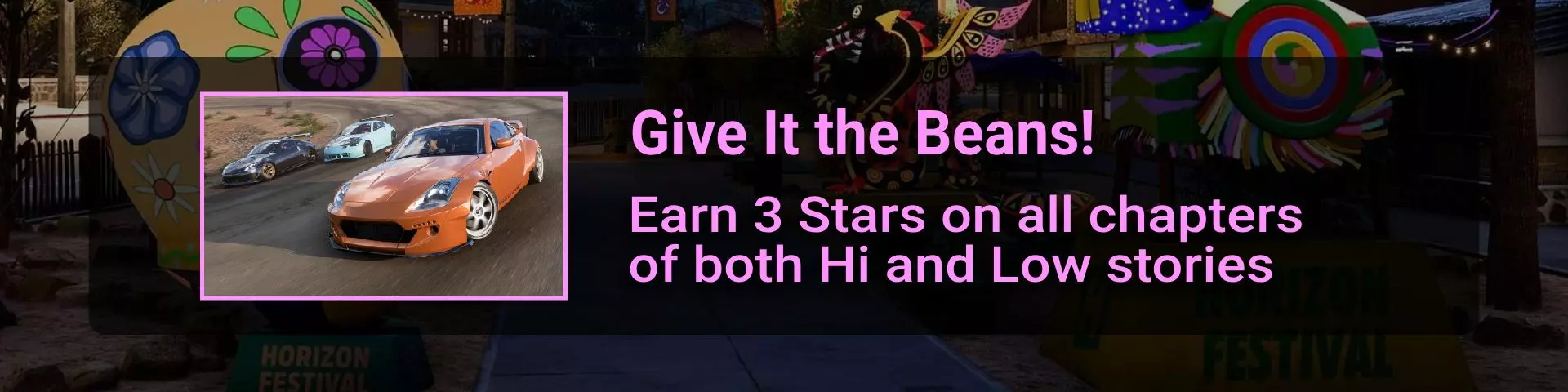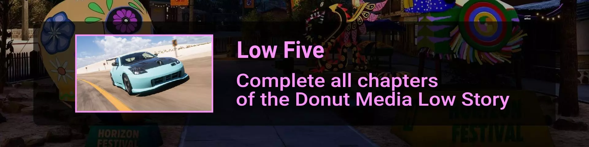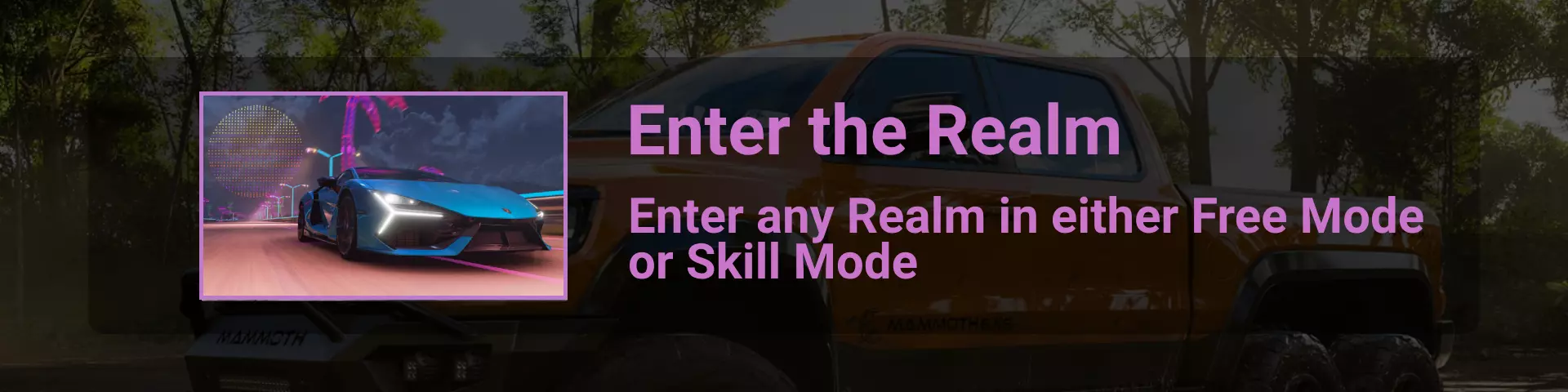 完成序章后,地平线街机活动将在墨西哥各地刷新。驾驶到这些粉色圆圈处(或直接传送),等待活动开始并参与其中。你不需要赢得活动,但尝试一下是值得的,因为你需要赢得5场活动才能解锁【Unlimited Prowess!】成就。 活动外观如下: