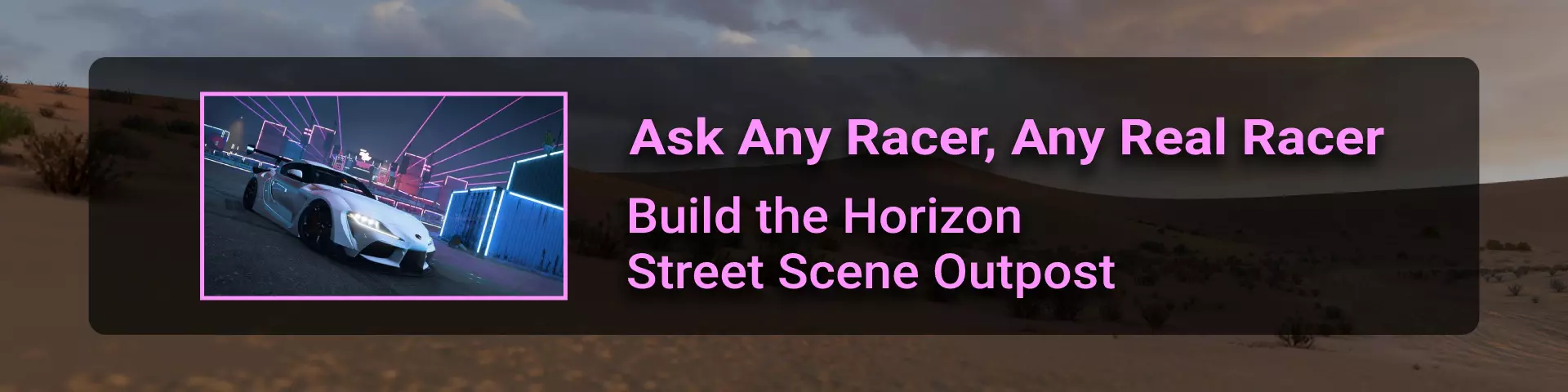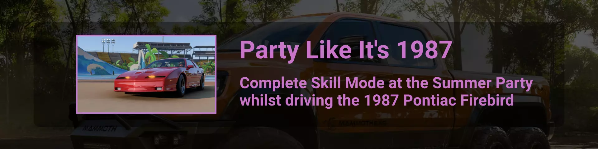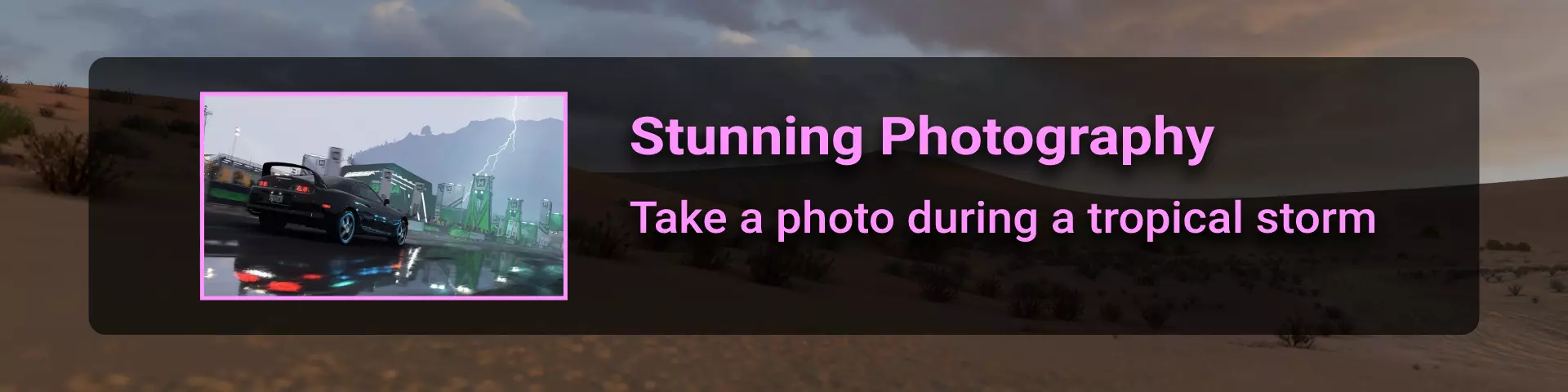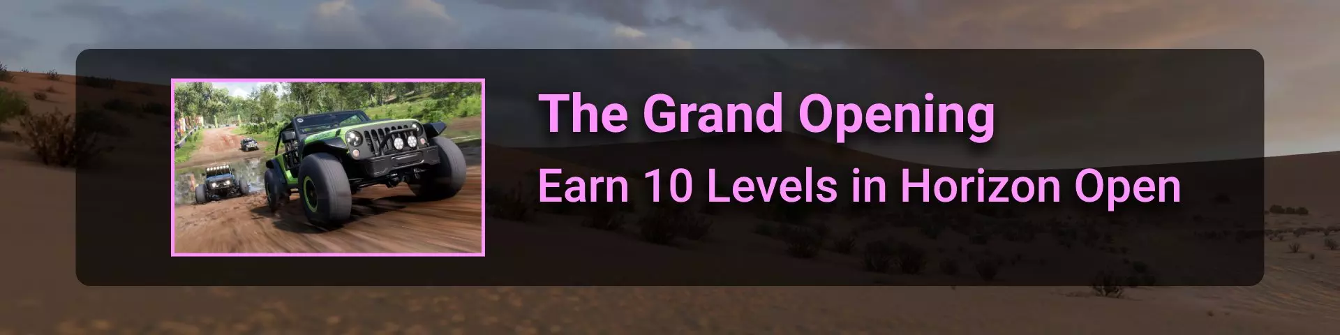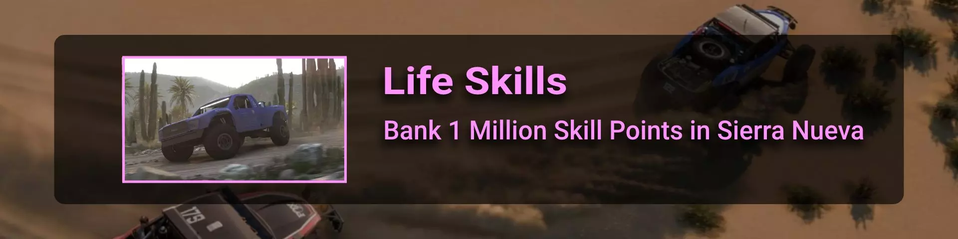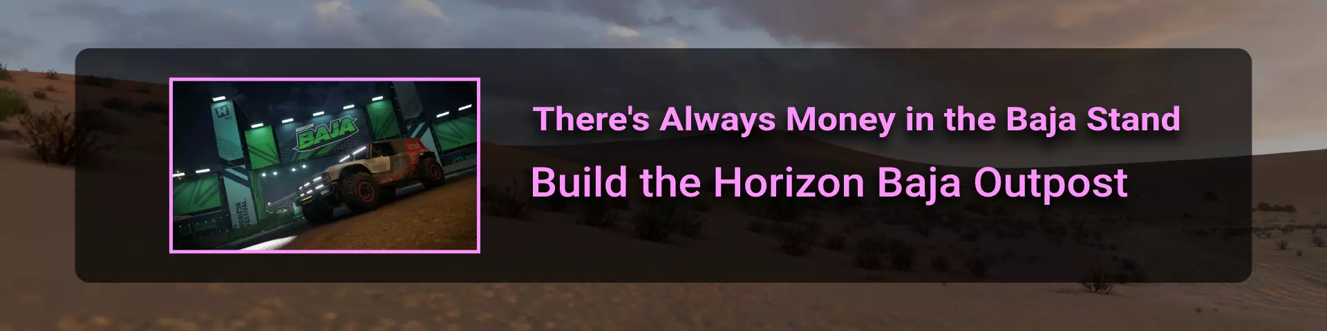 完成序章后,地平线街机活动将在墨西哥各地刷新。驾驶到这些粉色圆圈处(或直接传送),等待活动开始并参与其中。你不需要赢得活动,但尝试一下是值得的,因为你需要赢得5场活动才能解锁【Unlimited Prowess!】成就。 活动外观如下: