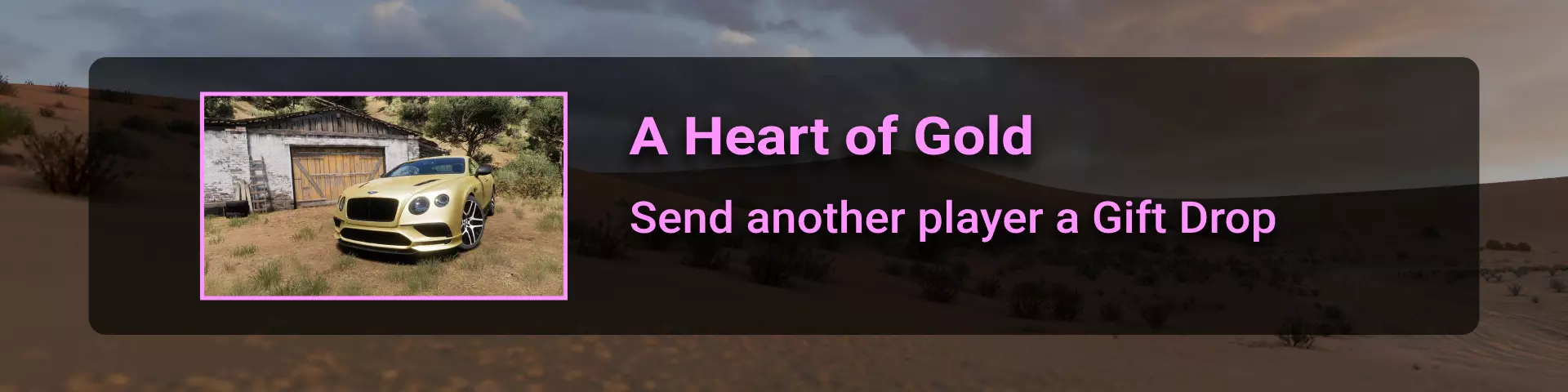 一旦解锁第一个【谷仓寻宝】车辆,你就有机会将车辆发送给其他玩家。请注意,这会将车辆从你的车库中移除,因此只发送你不使用的车辆,并且不要赠送以后可能对你有用的稀有车辆,以免需要在拍卖行或奖励游戏中重新获取。或者你可以通过菜单【我的地平线】-【发送礼物】来赠送礼物。制造商声望