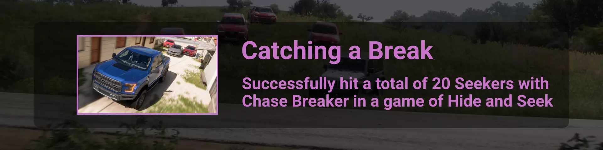 每场游戏你必须攻击20个搜寻者,成功的攻击会在对手身上显示一个破损汽车图标。将搜寻者聚集起来,对3-4个一组的搜寻者使用技能(理想情况下是5个,这样只需激活4次技能即可)。和【Blending In】成就一样,最佳地图是【Playa Azul】,你可以藏在树中……最简单的方法是组建一个6人车队,完成20次攻击。