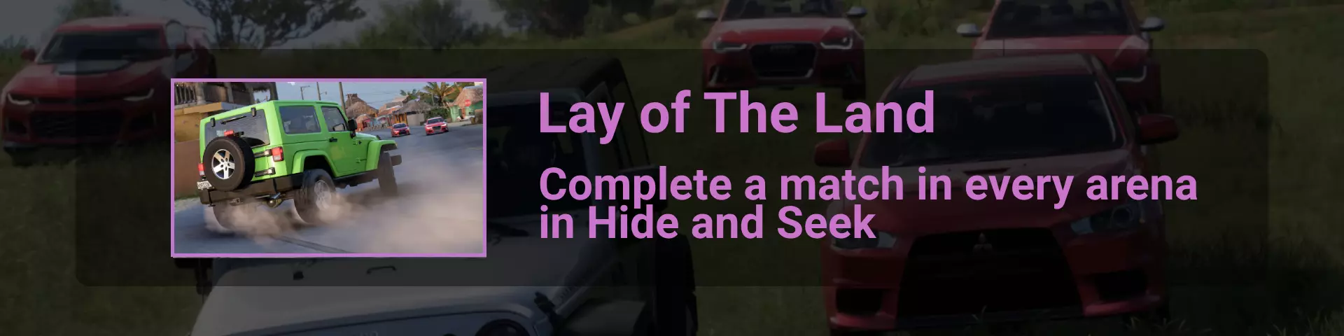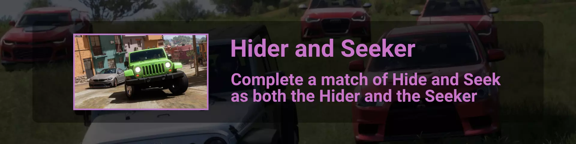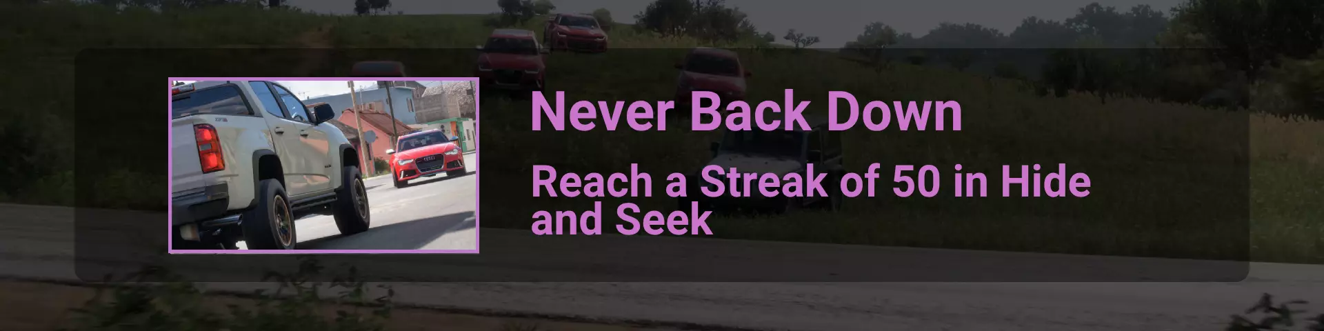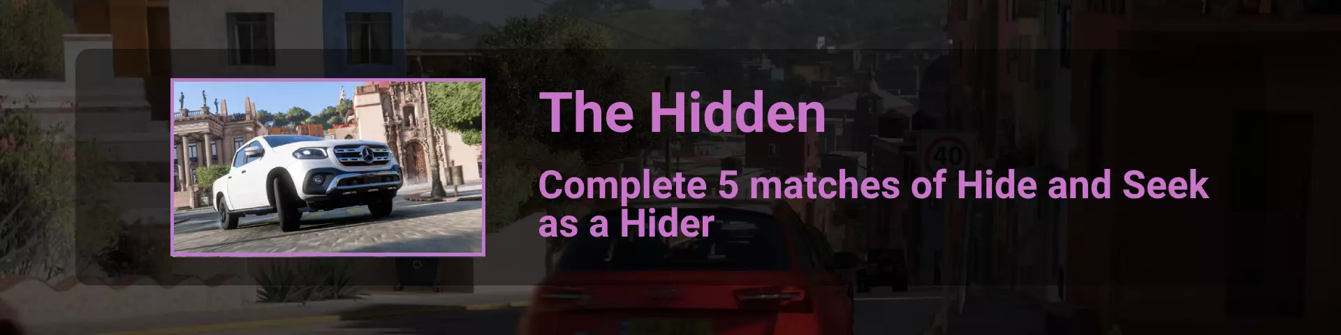 与之前成就中相同的高速公路和已升级的S2级车辆 ✦ 捉迷藏 你可以通过在线选项卡下的菜单或到达地图上的这个标记来开始捉迷藏模式游戏