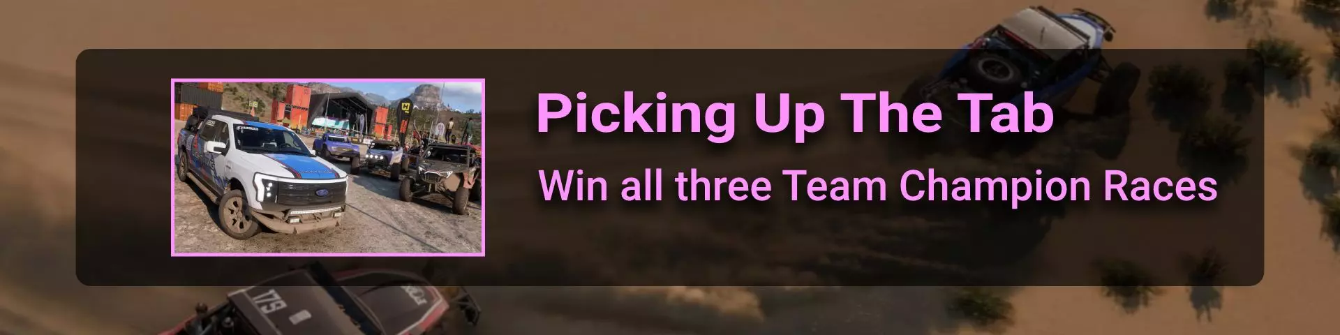 完成8场比赛/拉力赛赛事并达到8级声望后解锁。Picking Up The Tab