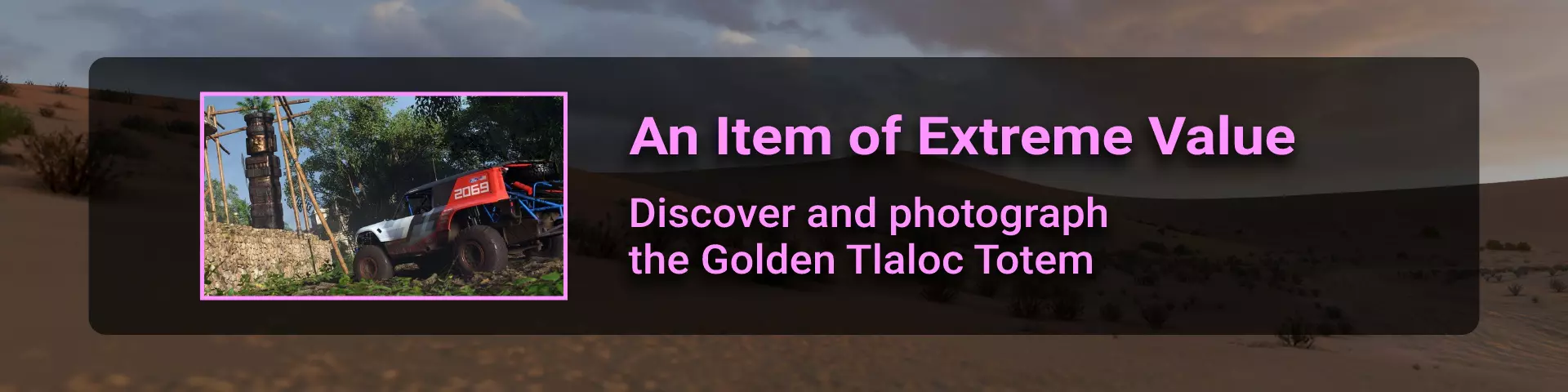 类别APEX“公路赛” - “图卢姆探险”。请务必完成本次探险中的额外目标,以获取“Stunning Photography”“An Item Of Extreme Value”(更多详情,请查看【相册】部分)和“New Tune”成就。