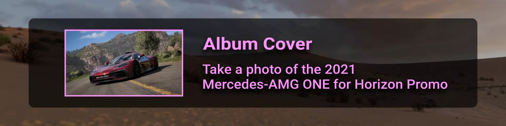 第一种方法: 进入菜单 > 创意中心 > 地平线超级7 > 挑战卡片 > 搜索 > 分享代码 > 输入290932975。然后拍摄你的车辆。 这就是梅赛德斯-AMG ONE 2021的外观。