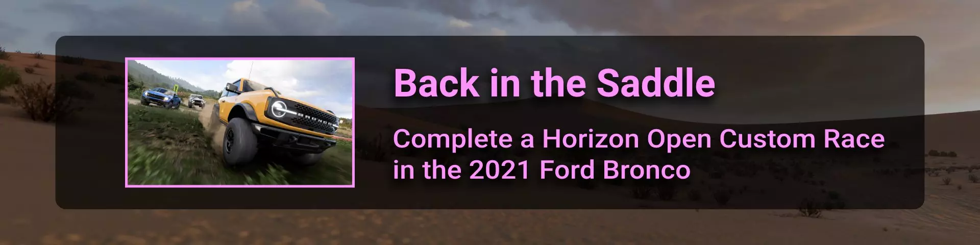 与“One for All”成就要求相同,但需选择2021款福特Bronco车辆。 ✦ 地平线10周年纪念 欢迎来到墨西哥2.0