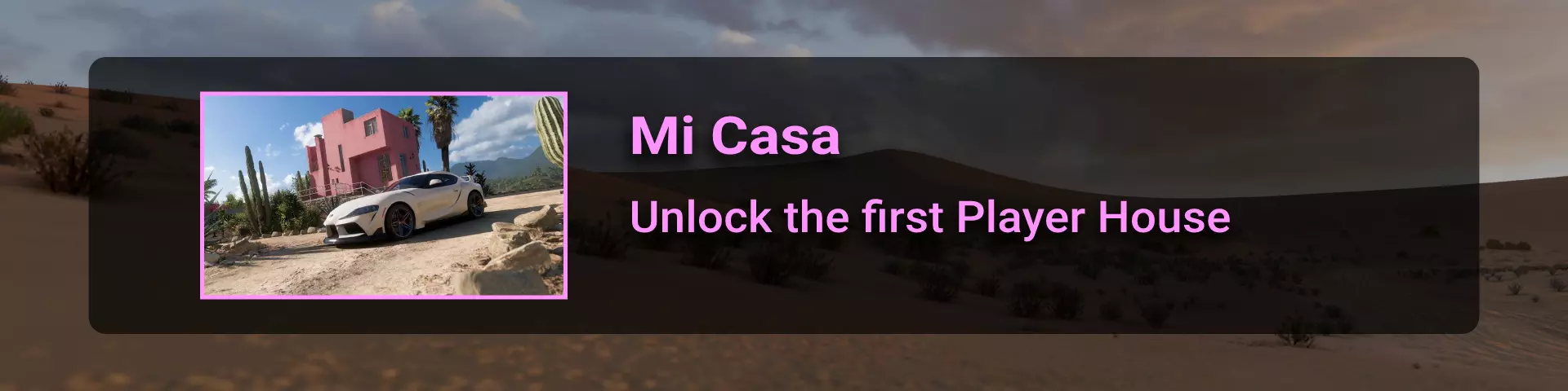 《极限竞速:地平线5》的首个玩家房屋是【贝拉之家】。完成初始驾驶、第一个展示活动、第一个地平线故事,并获得足够荣誉点数开启新的地平线冒险章节后,你将被引导至穆莱盖,在那里拉米罗会赠予你贝拉之家。这就是正确的流程。