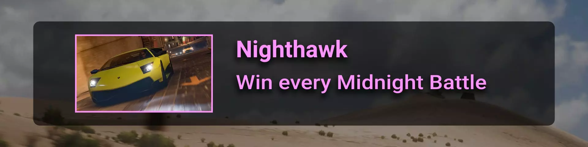 要解锁第一场午夜赛事,你需要赢得4场街头赛事。你可以标记所需的街头赛事,并在荣誉选项卡的街头赛事部分追踪它们。如果你不想花费太多时间,可以通过创意中心的赛事实验室游玩即时赛事。进入菜单>创意中心>赛事实验室>赛事蓝图>搜索>输入分享代码【120503011】。夜鹰