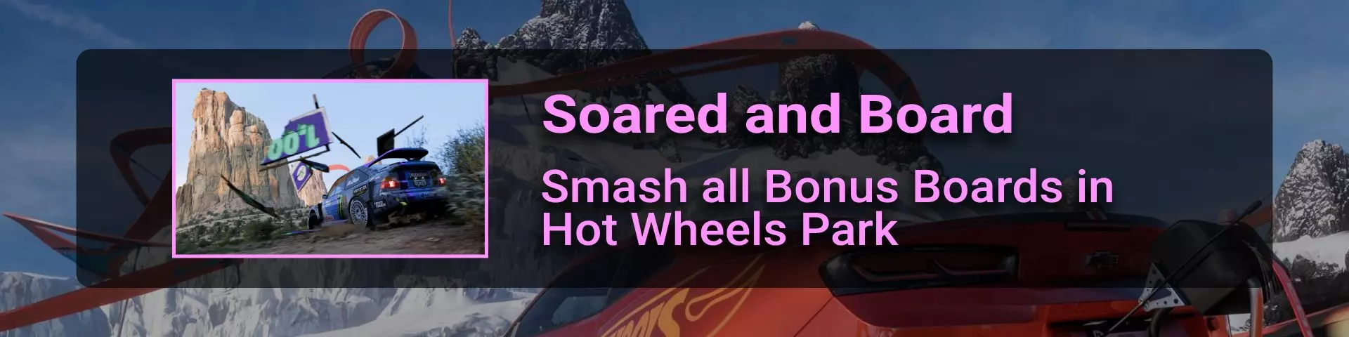这些木板可在每个地平线赛事的【地平线起源】故事中找到,但不包括第一章:地平线墨西哥。当你驾车靠近每个木板时,斯科蒂(本故事包的DJ主持人)会提示木板就在附近。此外,一旦你撞碎木板,即使退出赛事,该木板仍会被算作已收集。 第二章:地平线科罗拉多 你将驾驶你的第二辆车,一辆红色大众。这是一场星级赛事(不是第一场与大流士的比赛)。沿着路径驶下尘土飞扬的山丘,然后再爬上另一座山丘。在爬这座山丘的中途,你的左侧会看到木板。此时你距离目标约2.1英里。