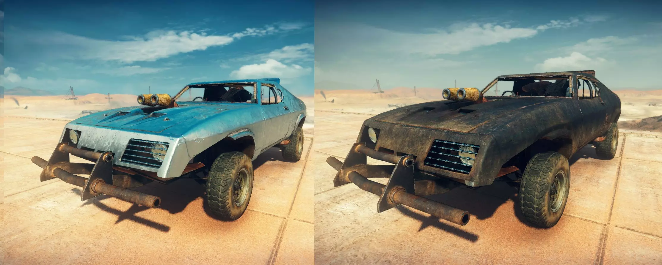 现在所有“杰作”系列车身均采用纯黑与镀铬配色,为纯色设计,无图案和条纹。 可通过Resorep进行安装。 现在你可以打造所谓的原版拦截者,也就是游戏初期提到的“黑上加黑”款。 你也可以选择镀铬拦截者,然后高喊“这是我的车!”,在愤怒之路上驰骋! 好了,大概就是这样!盖斯镇见!现在给真正的大佬们一个小秘密 复古风格疯狂麦克斯标志 该模组将《疯狂的麦克斯》主菜单和加载屏幕上显示的标志替换为基于电影《疯狂的麦克斯2:公路勇士》标志的版本。 使用Resorep进行安装