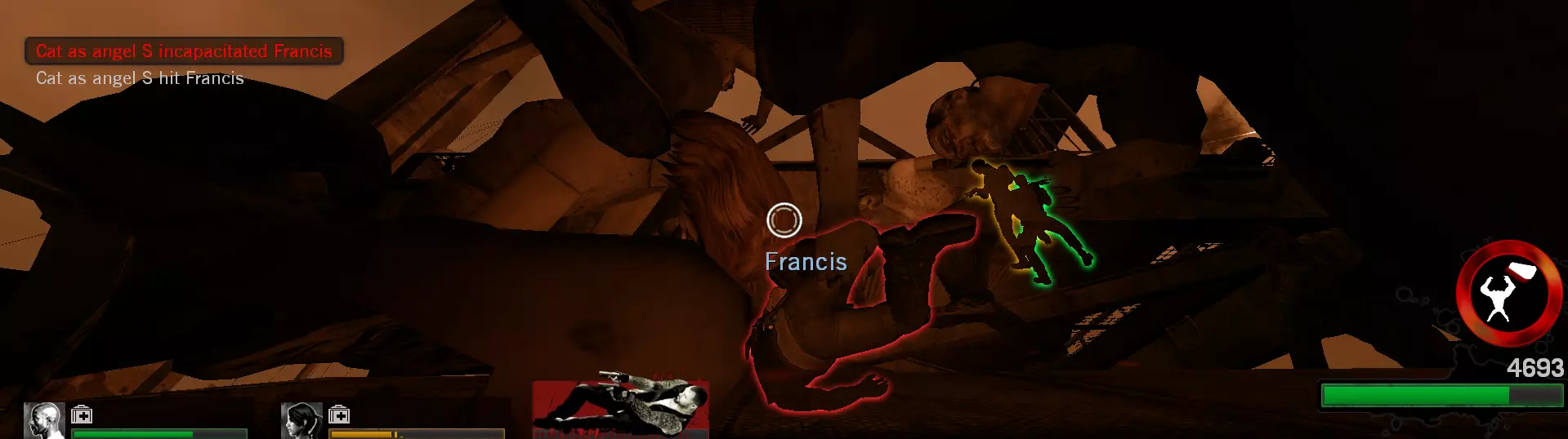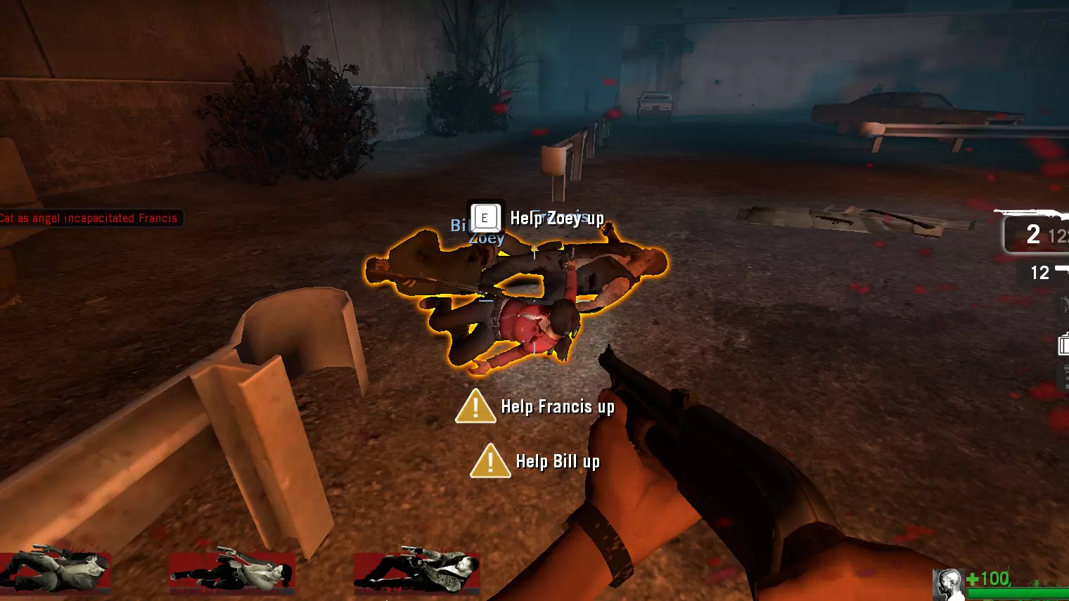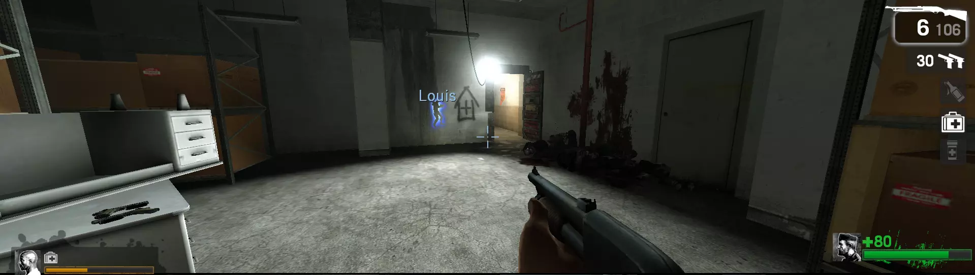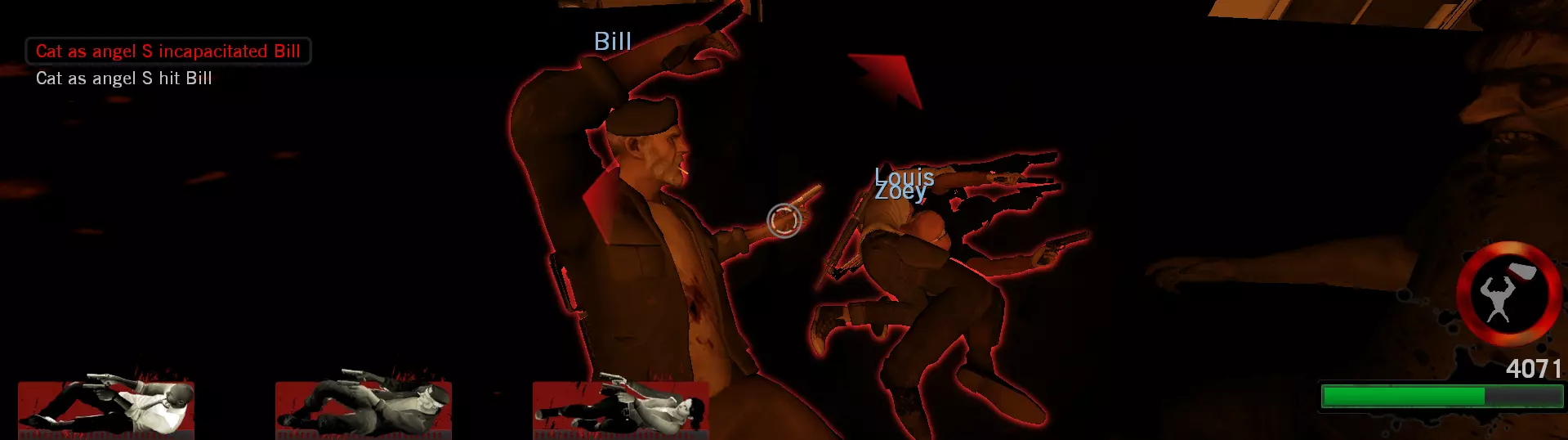 作为幸存者:使用霰弹枪或冲锋枪,逐个射击敌人,直到他们开始治疗,然后重复此过程直至敌人生命值变红。