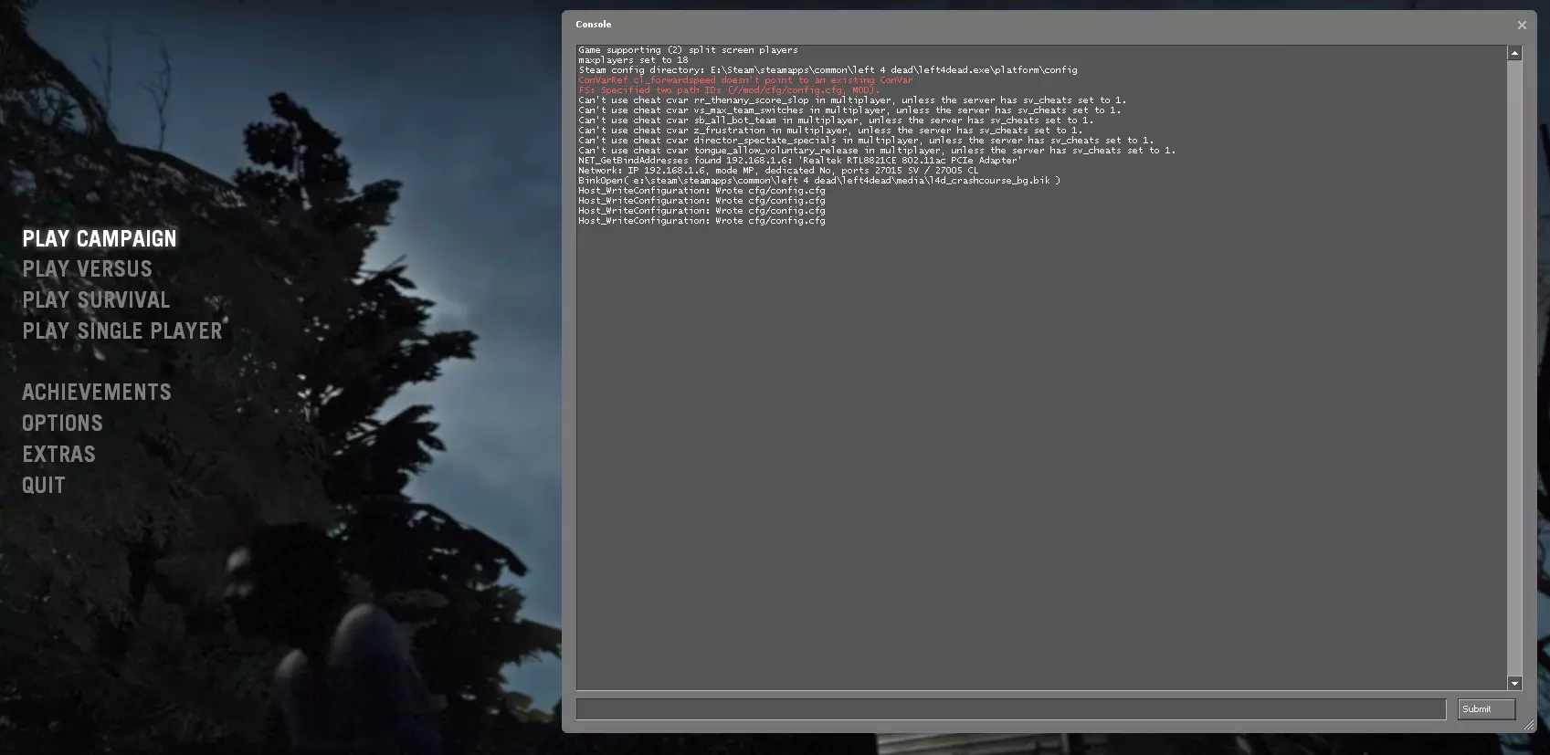 将以下内容复制粘贴到启动选项中: +sv_pausable 1 +vs_max_team_switches 99 +sb_all_bot_team 1 +z_frustration 0 +director_spectate_specials 1 +tongue_allow_voluntary_release 1 控制台和命令 查找控制台的方法: 点击选项,然后点击键盘/鼠标