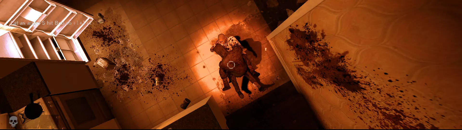 作为猎人在一次生命中扑向两名不同的幸存者。踢击2个机器人并连接分裂