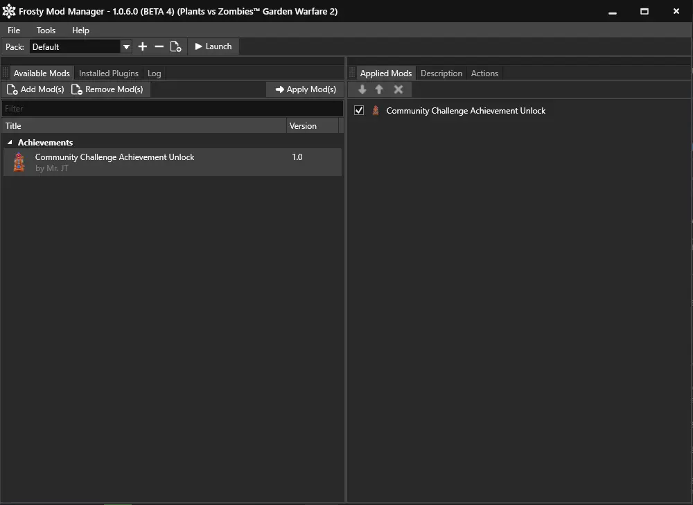 9) 最后点击“Launch”按钮。 10) 加载完成后,游戏会询问是否下载新的游戏内容,选择同意。 11) 但问题来了!游戏会提示错误并无法启动!原因是最近更新后新增了反作弊系统,会阻止模组运行。不过这对我们来说也不是问题! 12) 关闭游戏,然后打开FrostyFix。 13) 程序打开后,在底部选择“Ea启动器”,并在上方的输入框中指定我们的游戏。14) 点击齿轮图标,选择“设置”选项,然后在“Frosty Instalations”一栏中选择你安装的FrostyModManager路径。 15) 重启应用程序,然后点击大按钮“Launch wich ...”。 16) 完成!Steam和EA会重启并重新打开。再次启动游戏,【模组已生效】。 每个成就都需要特定的模组和操作。要获取Team Player和Together we Win成就,你需要安装特定模组。按照我的指南安装后,你需要击杀1个僵尸NPC和1个植物NPC,之后就能自动获得这些成就(这是我目前找到的唯一解决方法)。