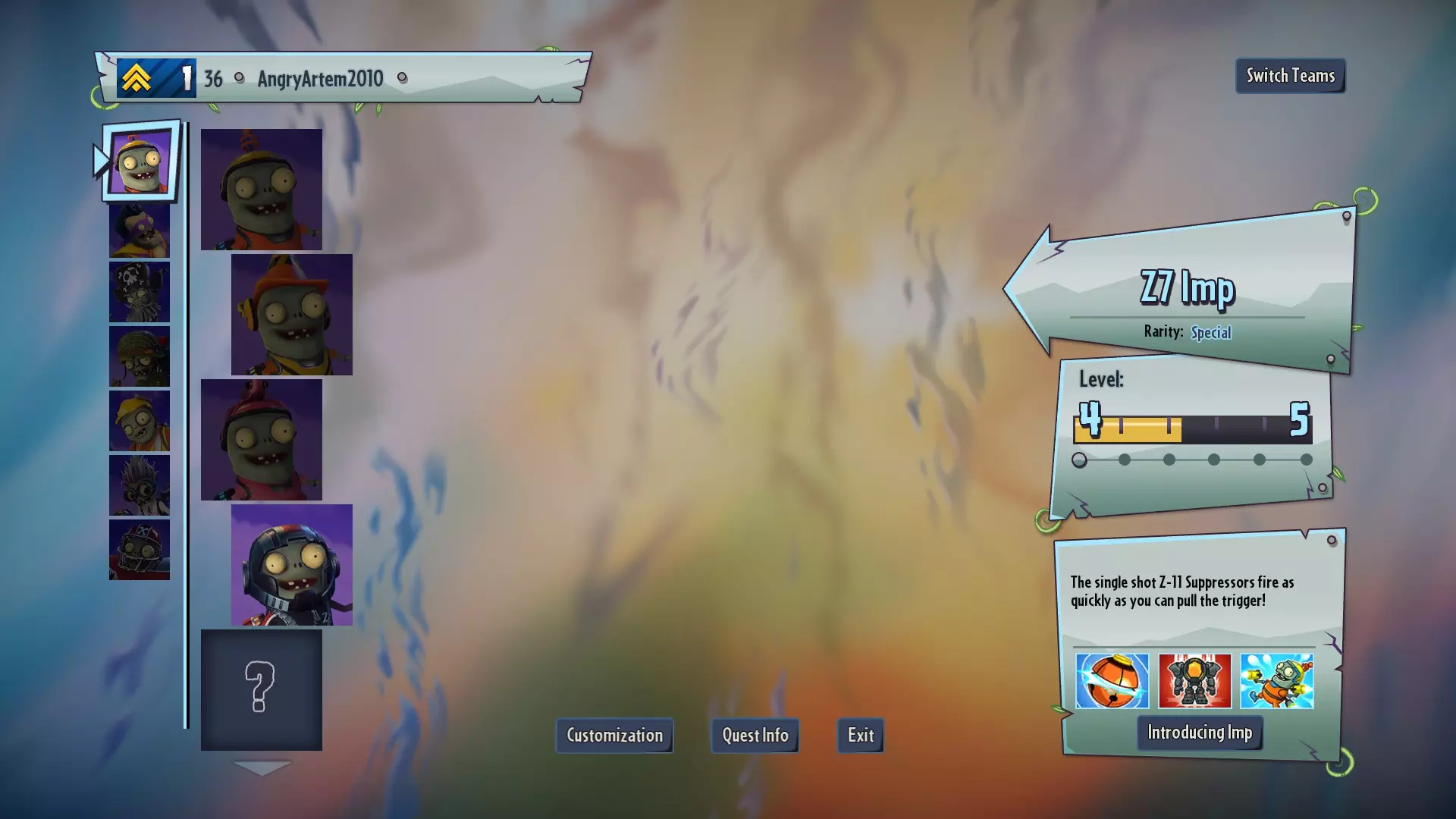 【Stomp the Yard】- 选择小型僵尸角色。前往己方基地的地图中心,夺取中央旗帜,积攒2个技能点数(Z-Mech),激活Z-Mech后用机器人践踏消灭50株植物。