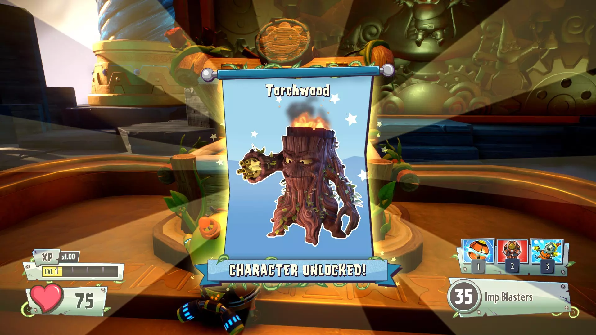 1) 简单超级 - 选择超级大脑角色。前往你基地地图的中心,占领中央旗帜,并用英雄之拳摧毁25株植物,用英雄光束摧毁25株植物。