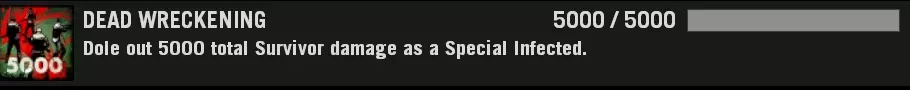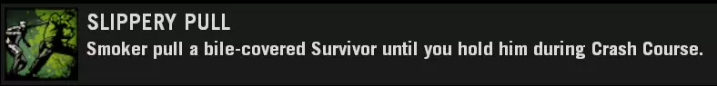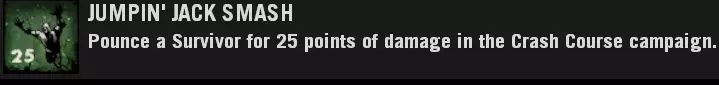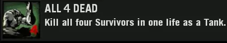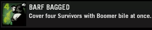 如果你失败了,重新加入感染者队伍并再次尝试。 注意事项 通过死亡向幸存者喷射呕吐物不计入成绩。 如果你无法向所有四名幸存者喷射呕吐物,尸潮可以作为有效的干扰手段。